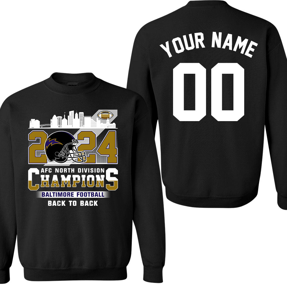 2024 Baltimore Football AFC North Division Champions Skyline Double Sided Sweatshirt, 2024 AFC North Champs 2 Sided Custom Sweatshirt
