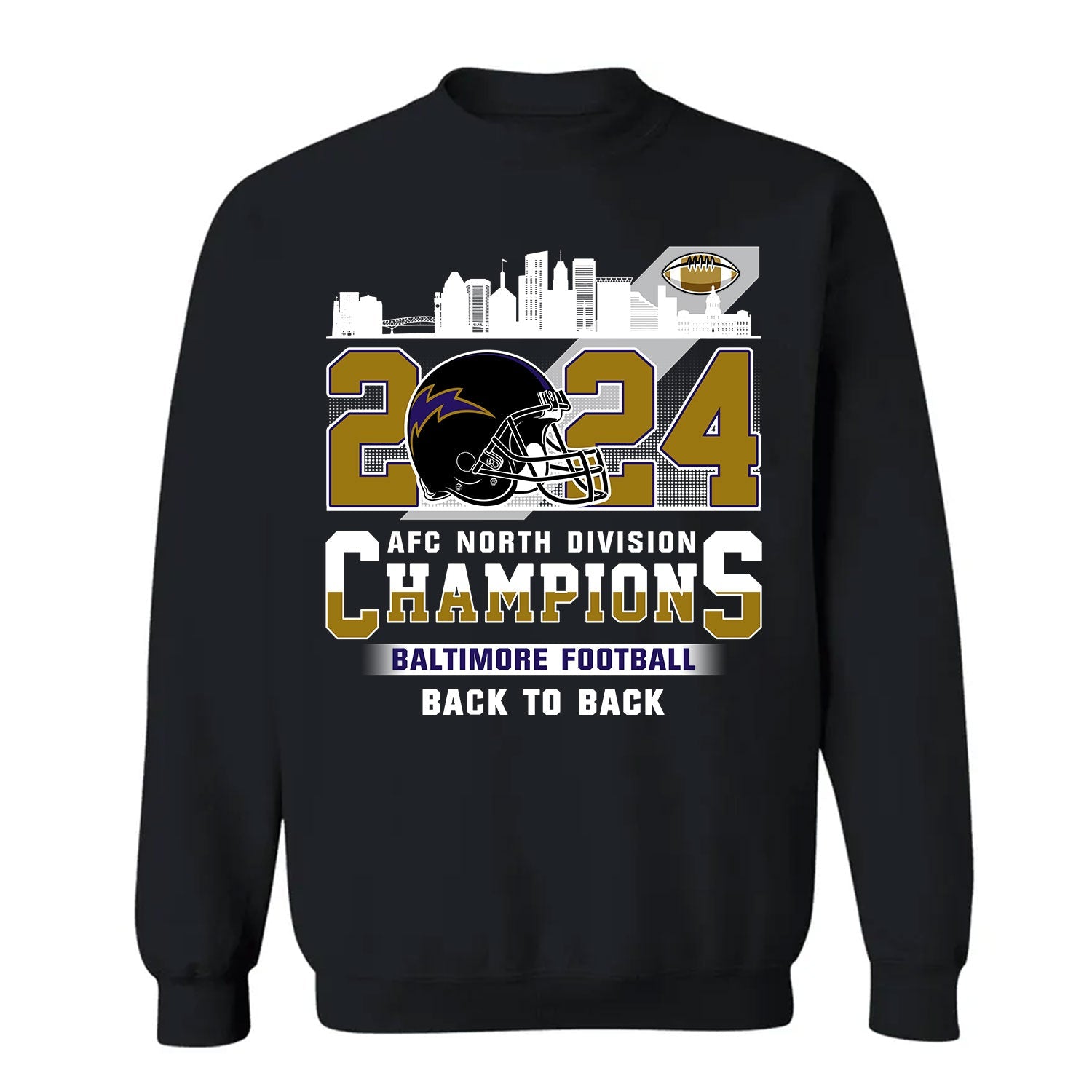 2024 Baltimore Football AFC North Division Champions Skyline Hoodie, 2024 AFC North Champs Apparel For Baltimore Football Fans T-Shirt Hoodie Sweatshirt Long Sleeve V-neck Shirts