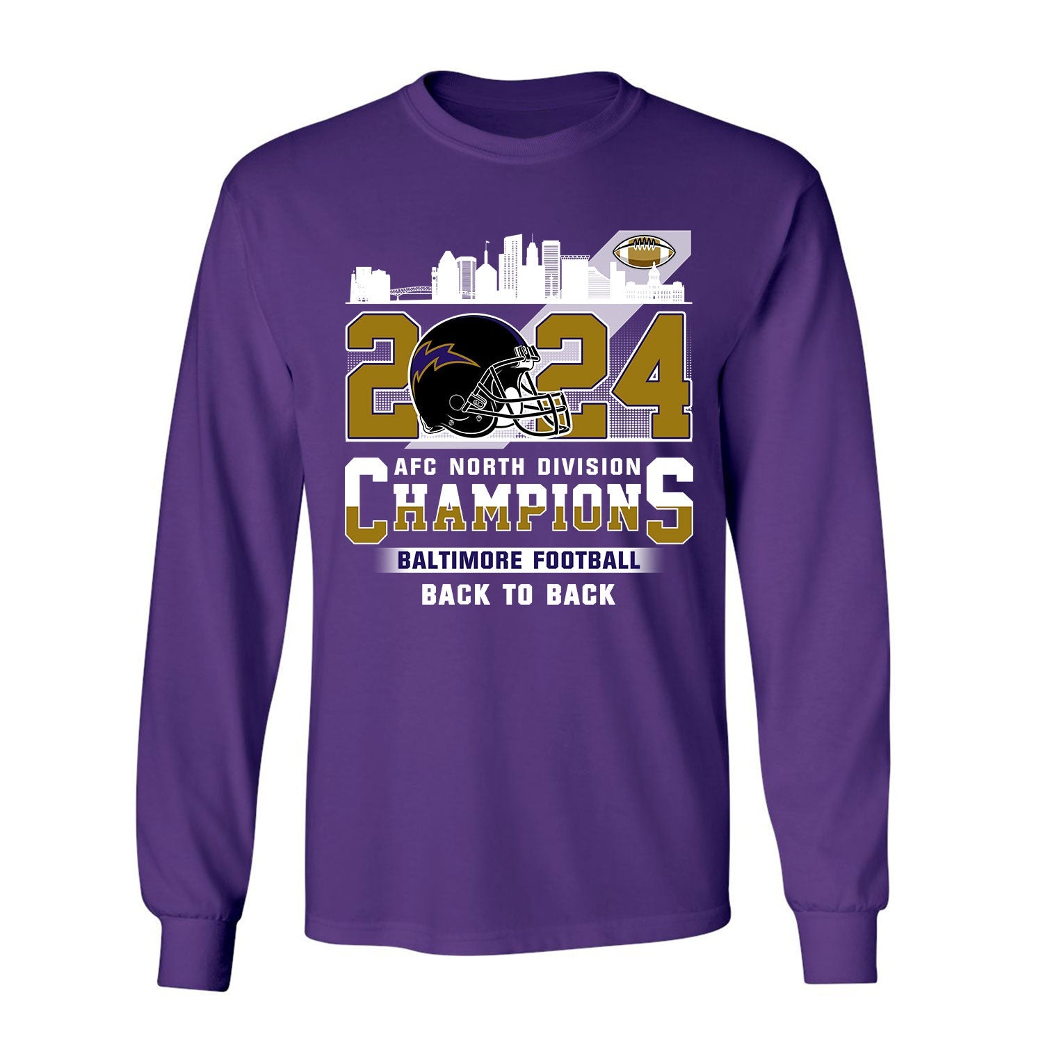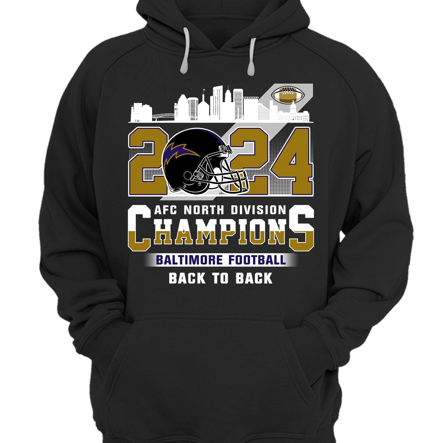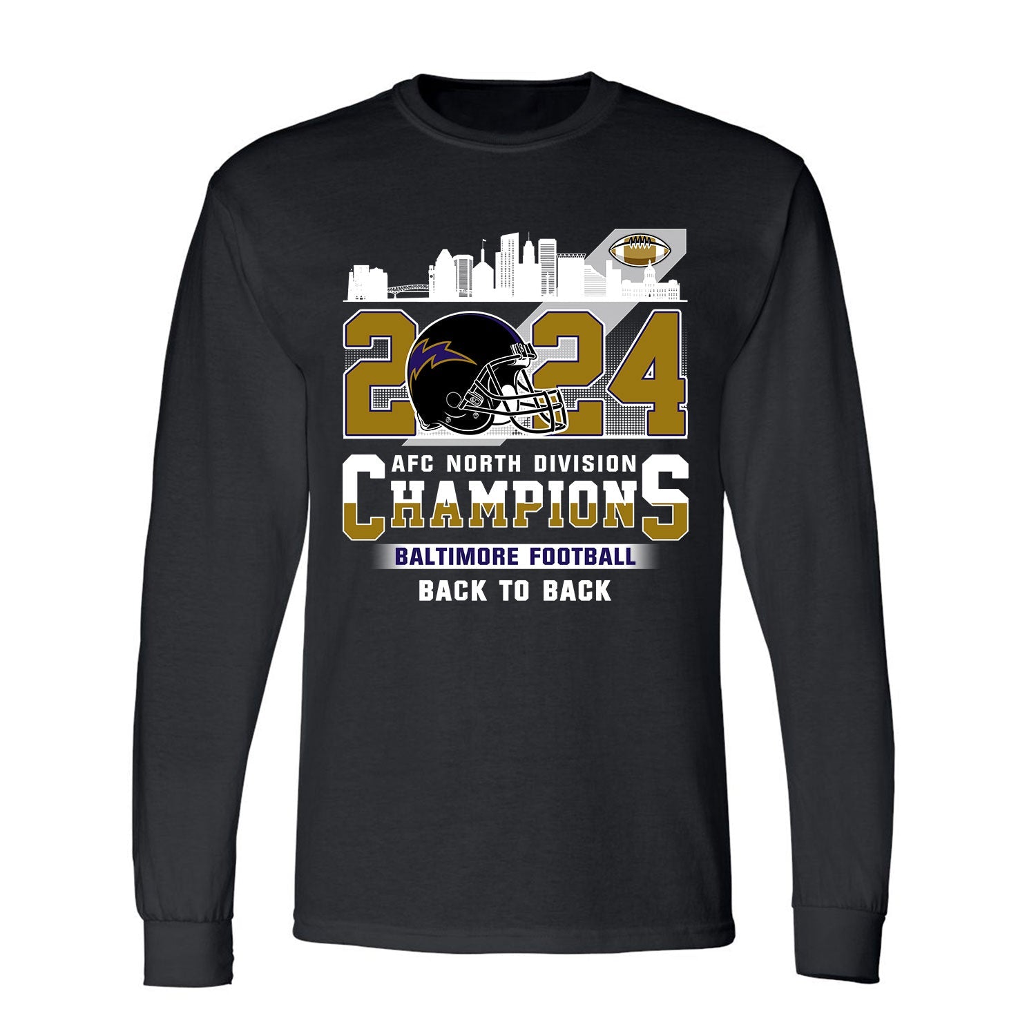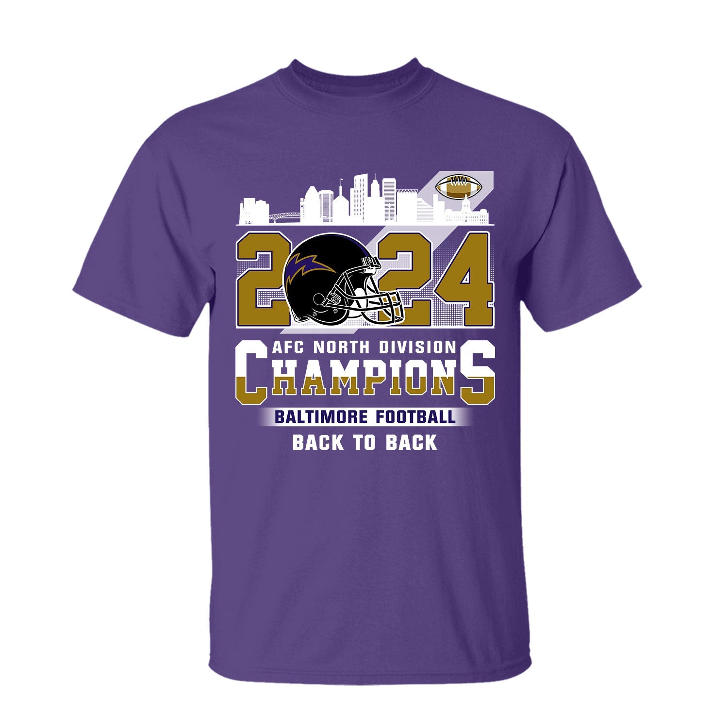 2024 Baltimore Football AFC North Division Champions Skyline Shirts, 2024 AFC North Champs Apparel For Baltimore Football Fans T-Shirt Hoodie Sweatshirt Long Sleeve V-neck Shirts