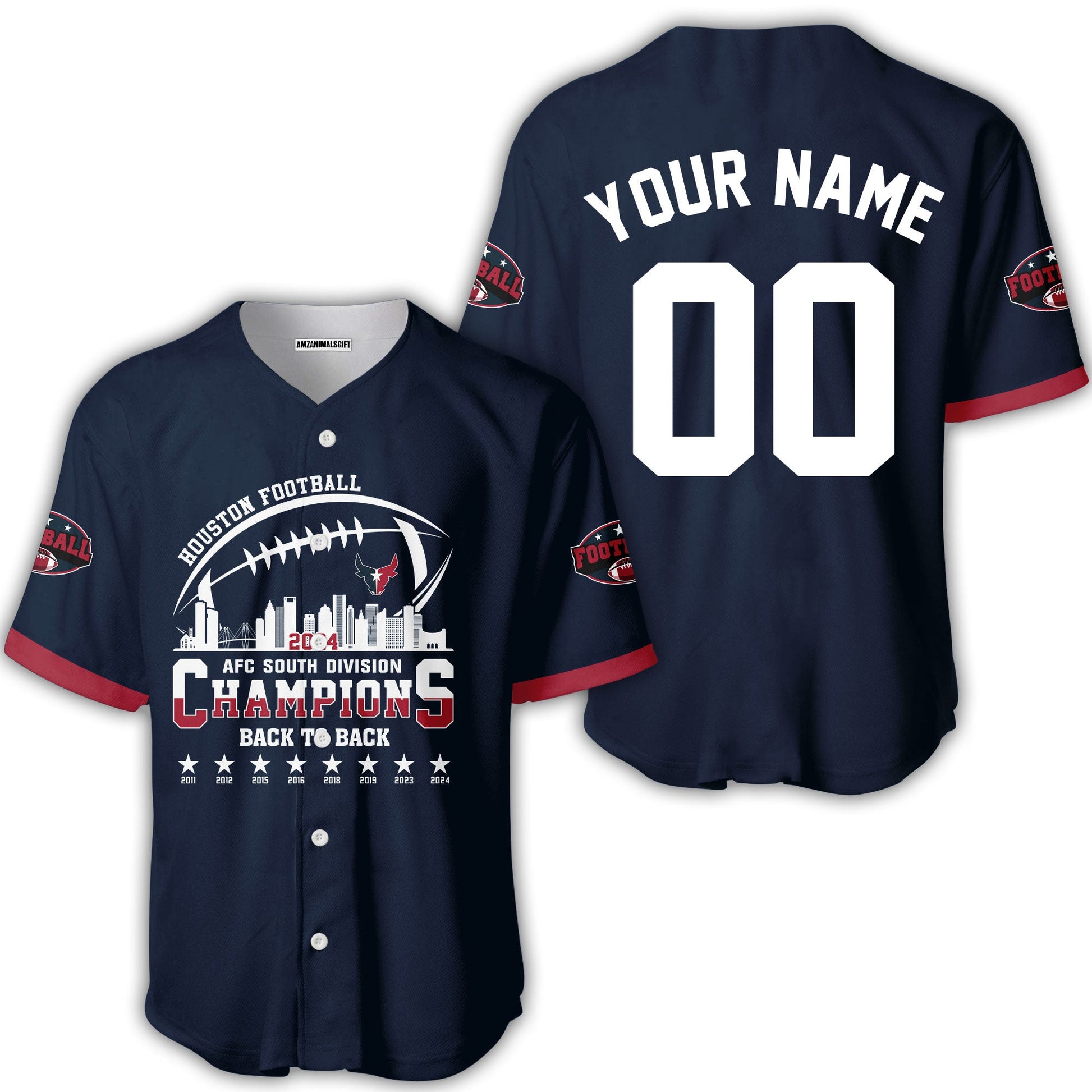 2024 Houston American Football AFC South Champions Custom Baseball Jersey, Custom Houston Football Division Champion Baseball Jersey