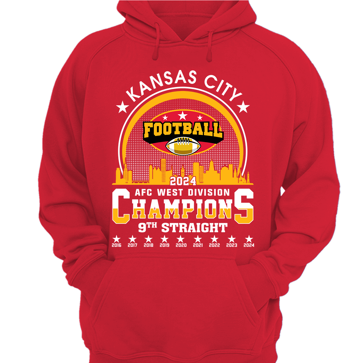 2024 Kansas City Football AFC West Champs 9th Straight Hoodie Skyline, Conquered AFC West Champs Hoodie For Kansas City Football
