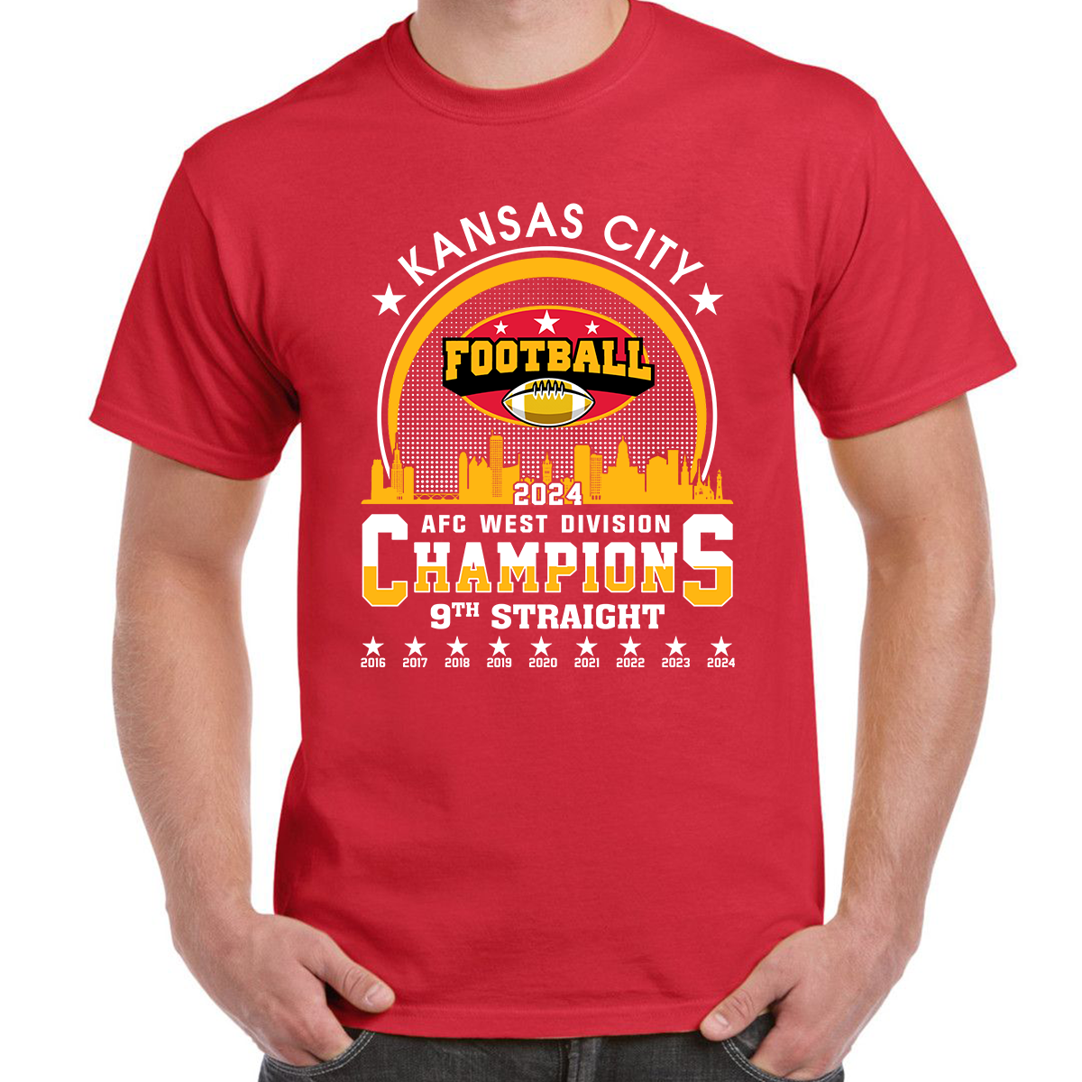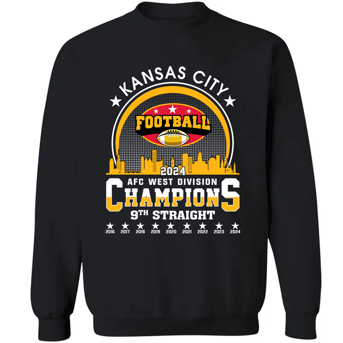 2024 Kansas City Football AFC West Champs 9th Straight Hoodie Skyline, Conquered AFC West Champs Hoodie For Kansas City Football