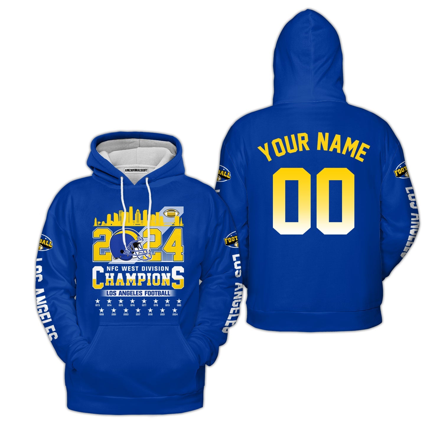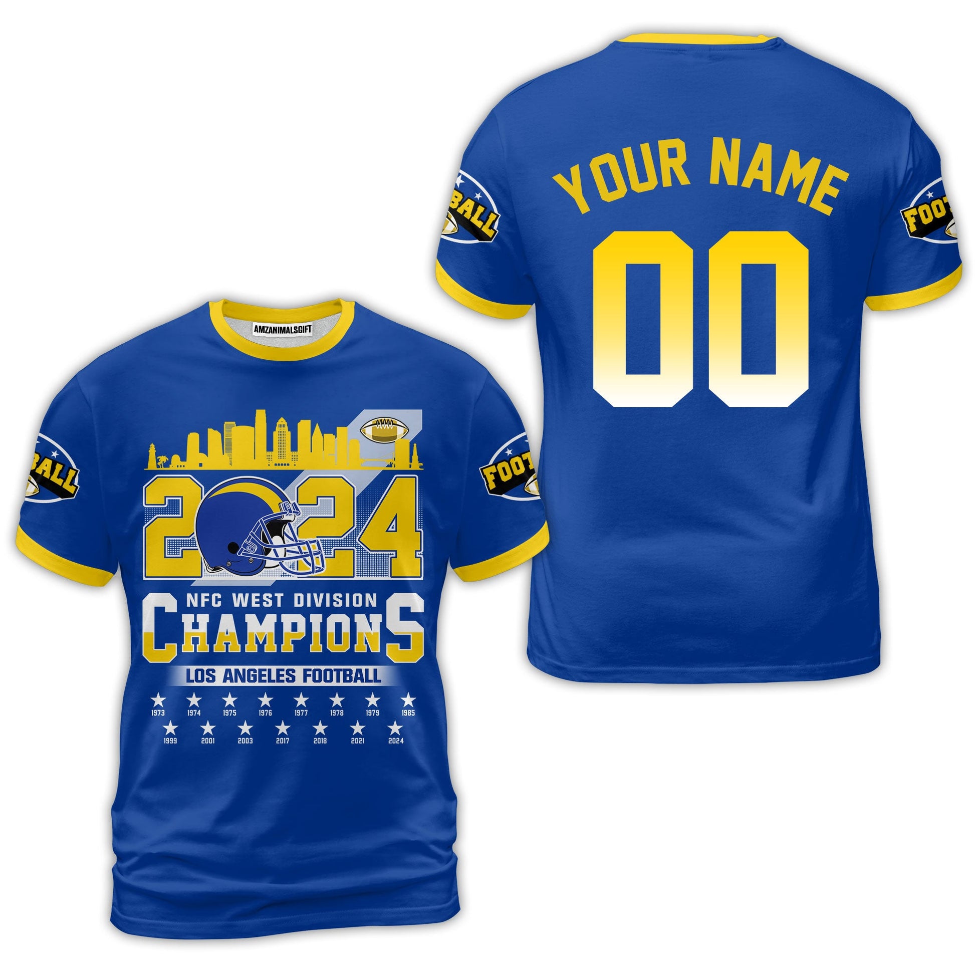 2024 Los Angeles Football NFC West Division Champions Skyline Custom Shirts, 2024 NFC West Champs Champions Custom Double Sided T-Shirt Hoodie Sweatshirt Long Sleeve Baseball Jersey V-neck Jersey