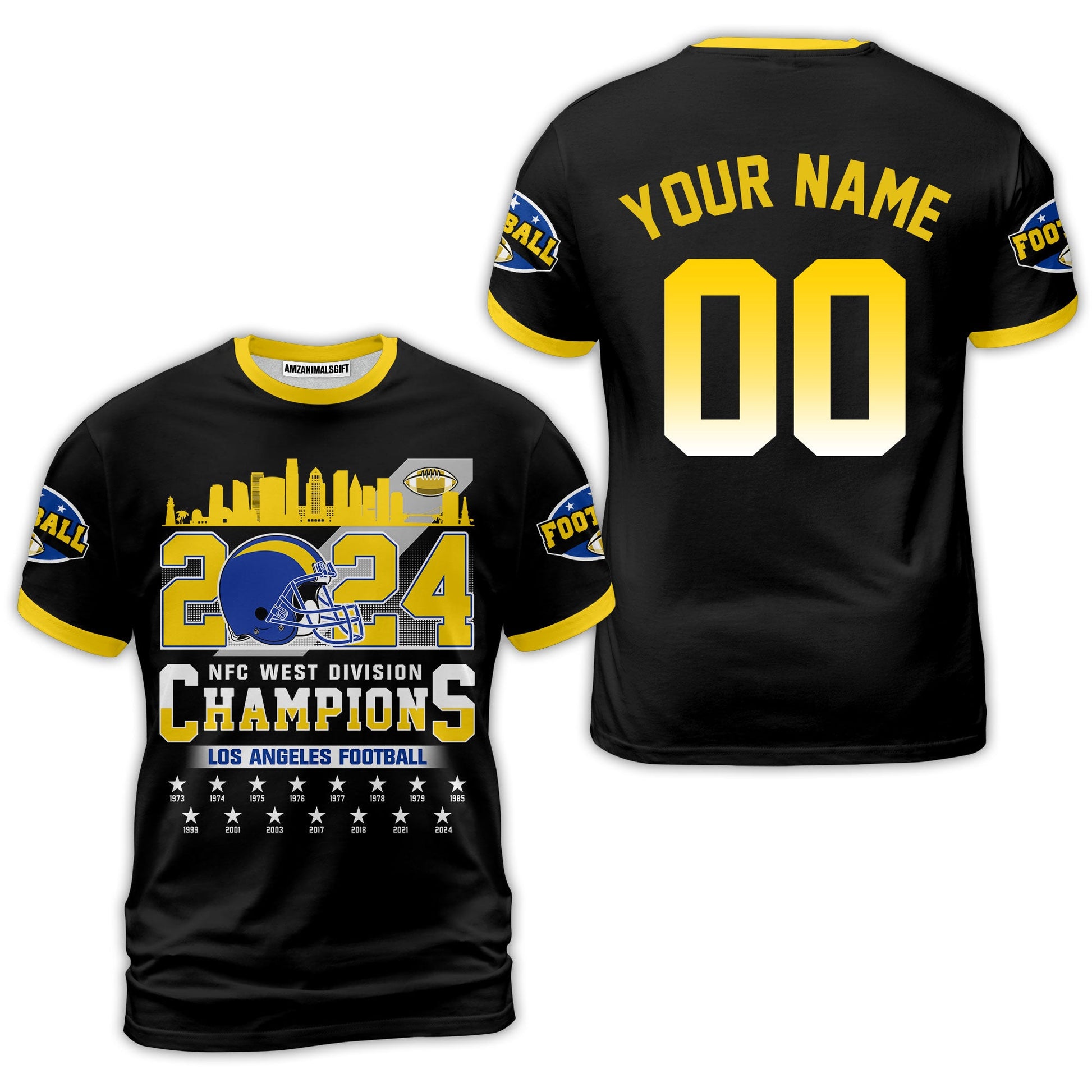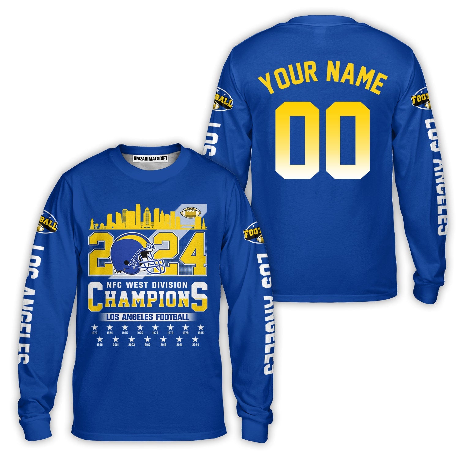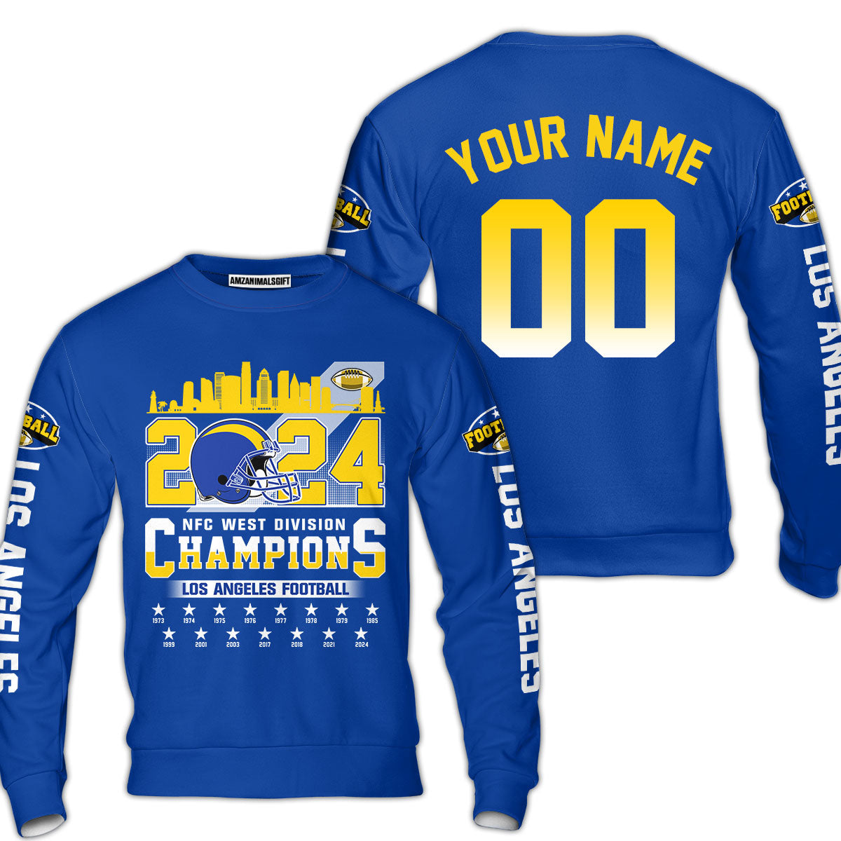2024 Los Angeles Football NFC West Division Champions Skyline Custom Sweatshirt, 2024 NFC West Champs Champions Custom Double Sided T-Shirt Hoodie Sweatshirt Long Sleeve Baseball Jersey V-neck Jersey