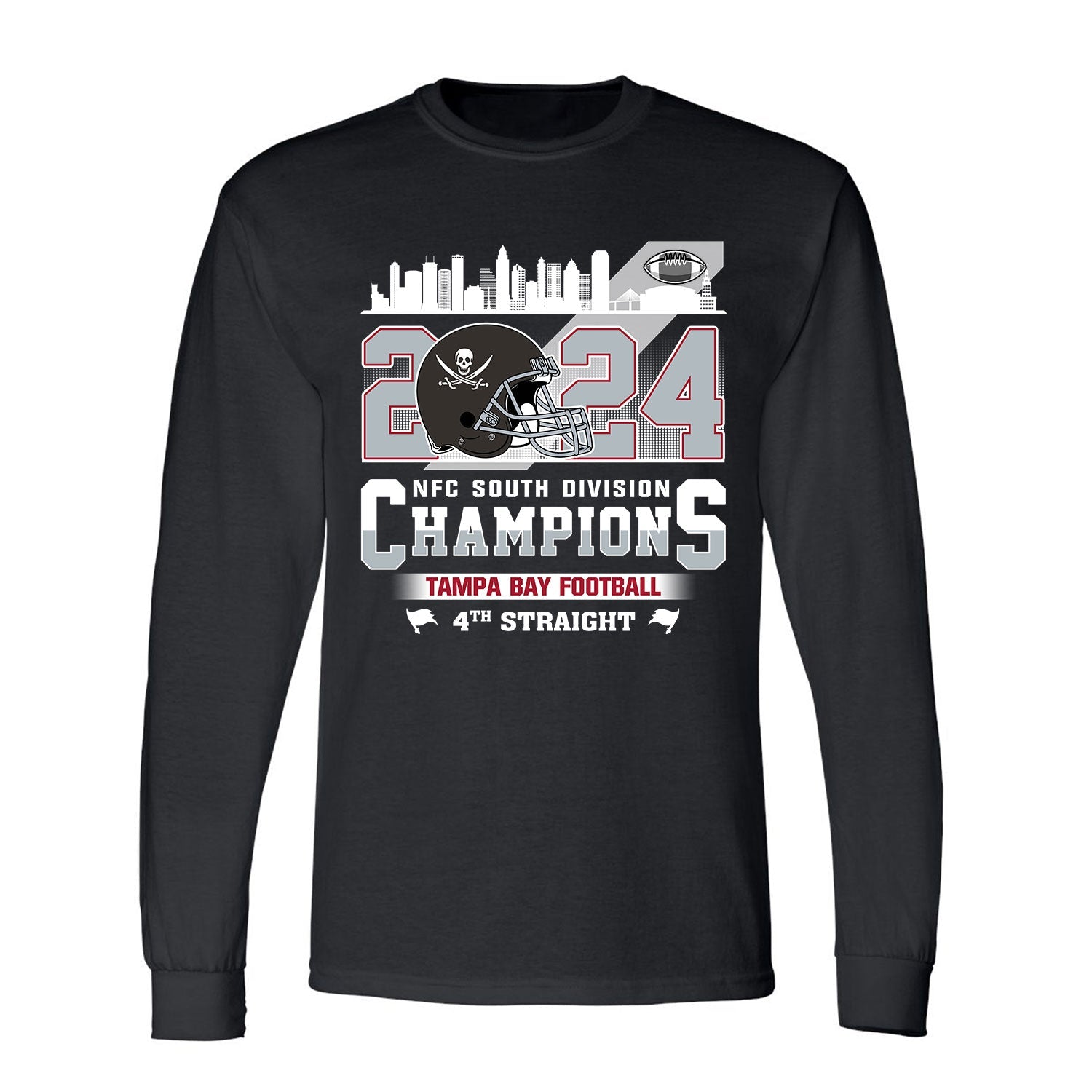 2024 Tampa Bay Football NFC South Division Champions Skyline Long Sleeve Shirt, 2024 NFC South Champs Long Sleeve Shirts For Tampa Bay Football Fans