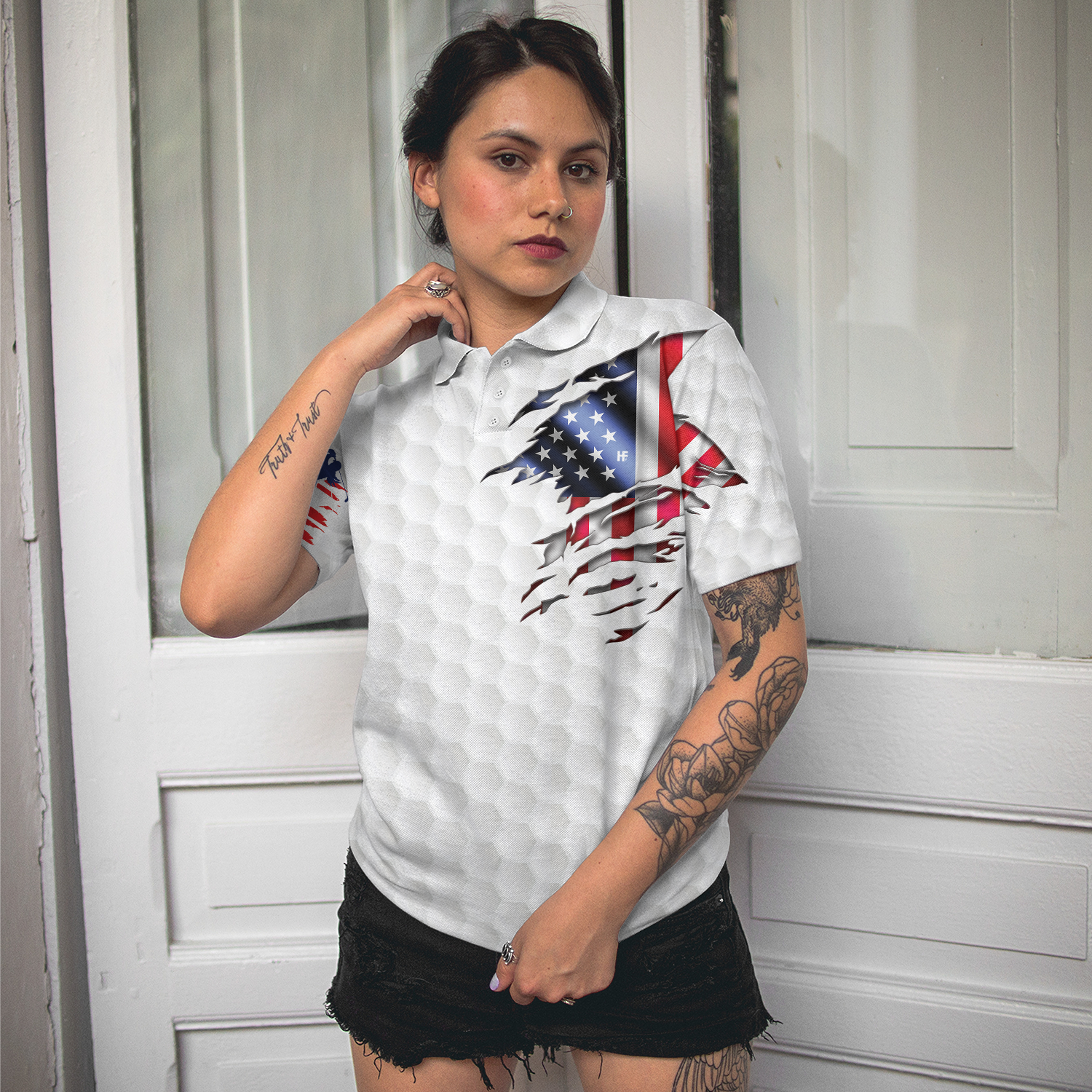 American Woman Golfer Golf Shirt Short Sleeve Women Polo Shirt, American Flag Polo Shirt, Best Golf Shirt For Ladies, Gift For Golfers