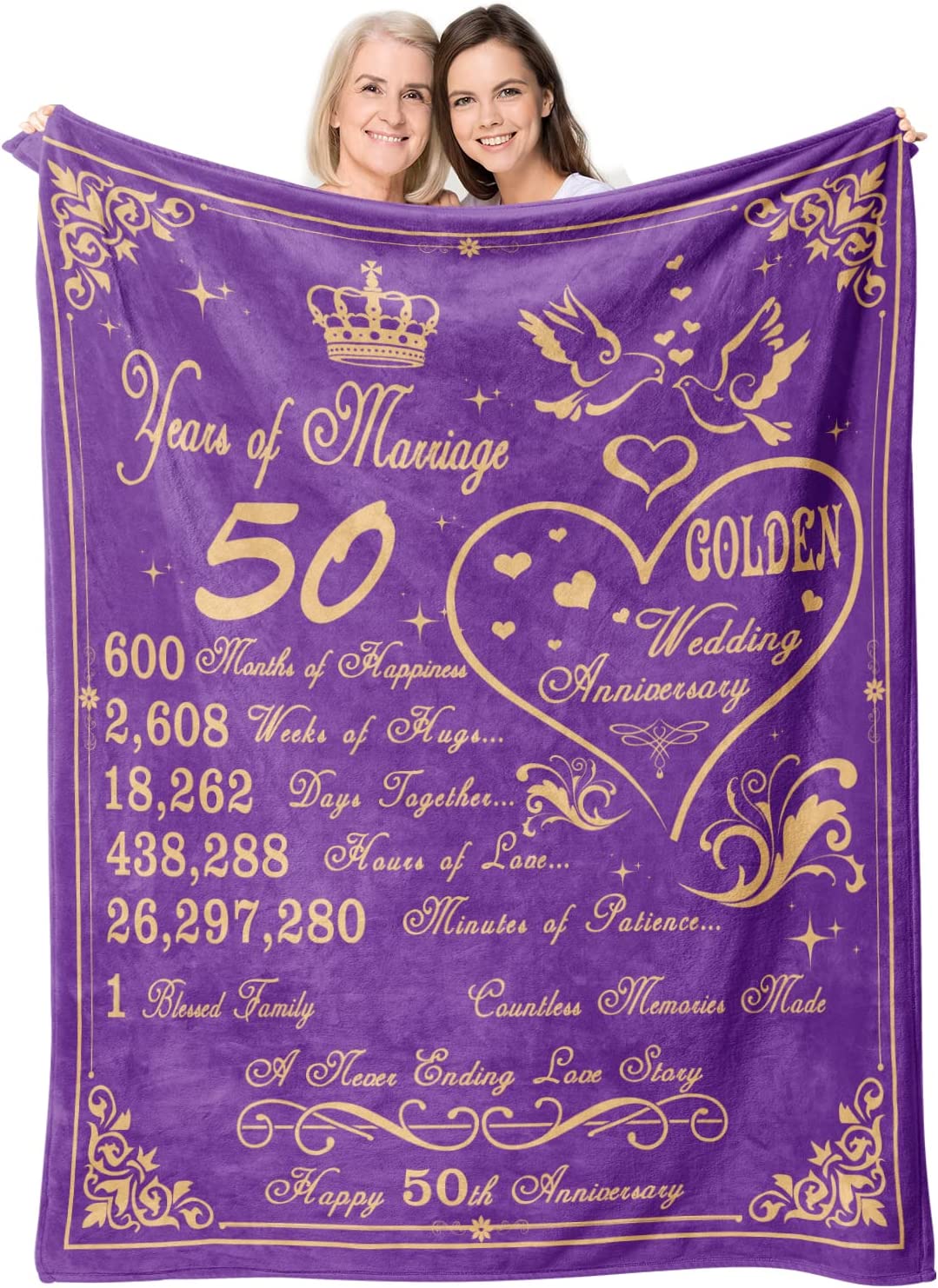 Anniversary Wedding Gift For Couple, 50Th Anniversary Blanket, Gifts For Couple Wife Husband Fifty Golden Wedding Blanket 60X 50 For Mom Dad Him Her Parents 50 Years Of Marriage Throw Blankets Valentine's Day Love Gifts Ideas.
