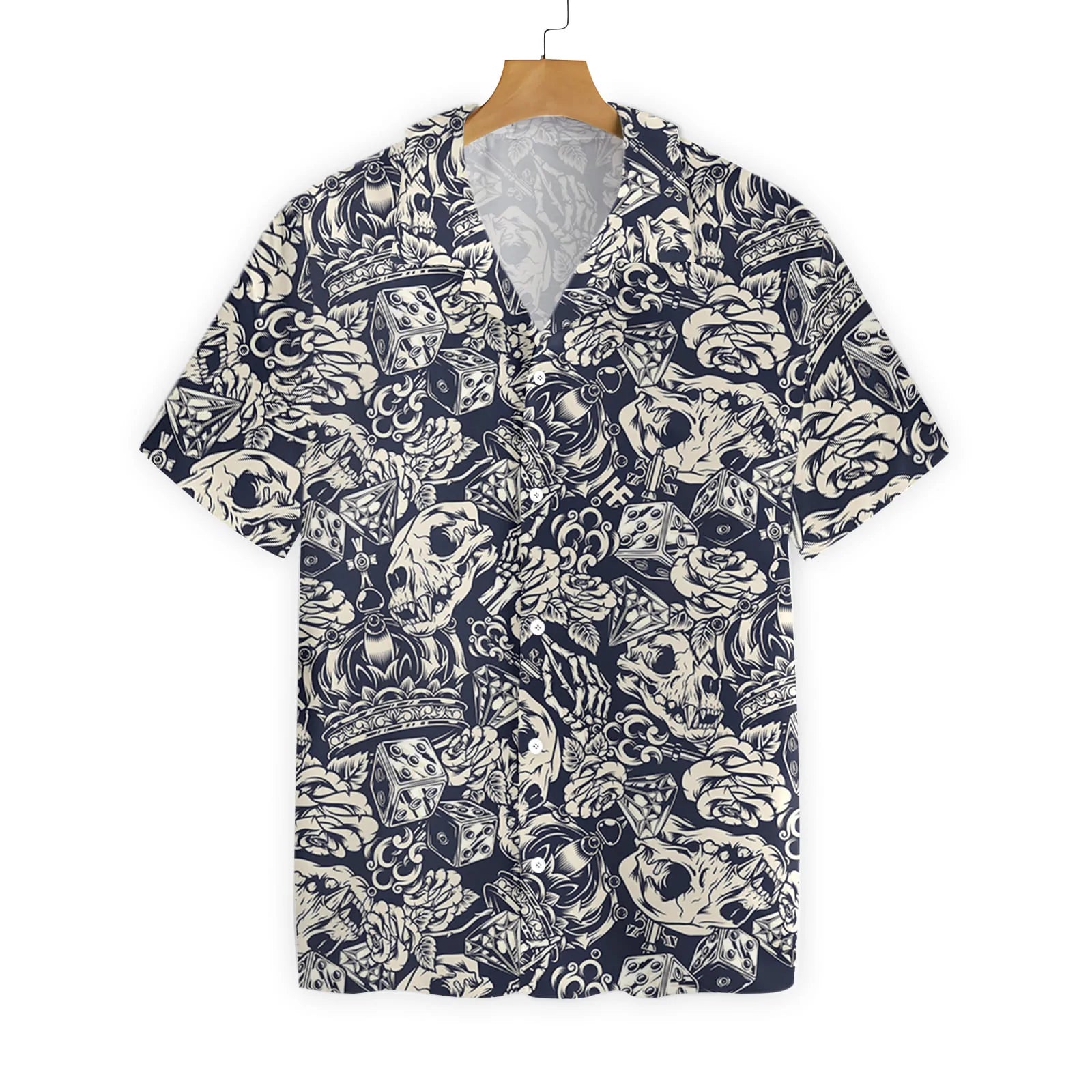 Apes Skull Seamless Pattern Hawaiian Shirt, Crown Rose Dice Hand Bones Aloha Shirt For Men & Women, Best Gift For Husband, Wife, Boyfriend, Girlfriend