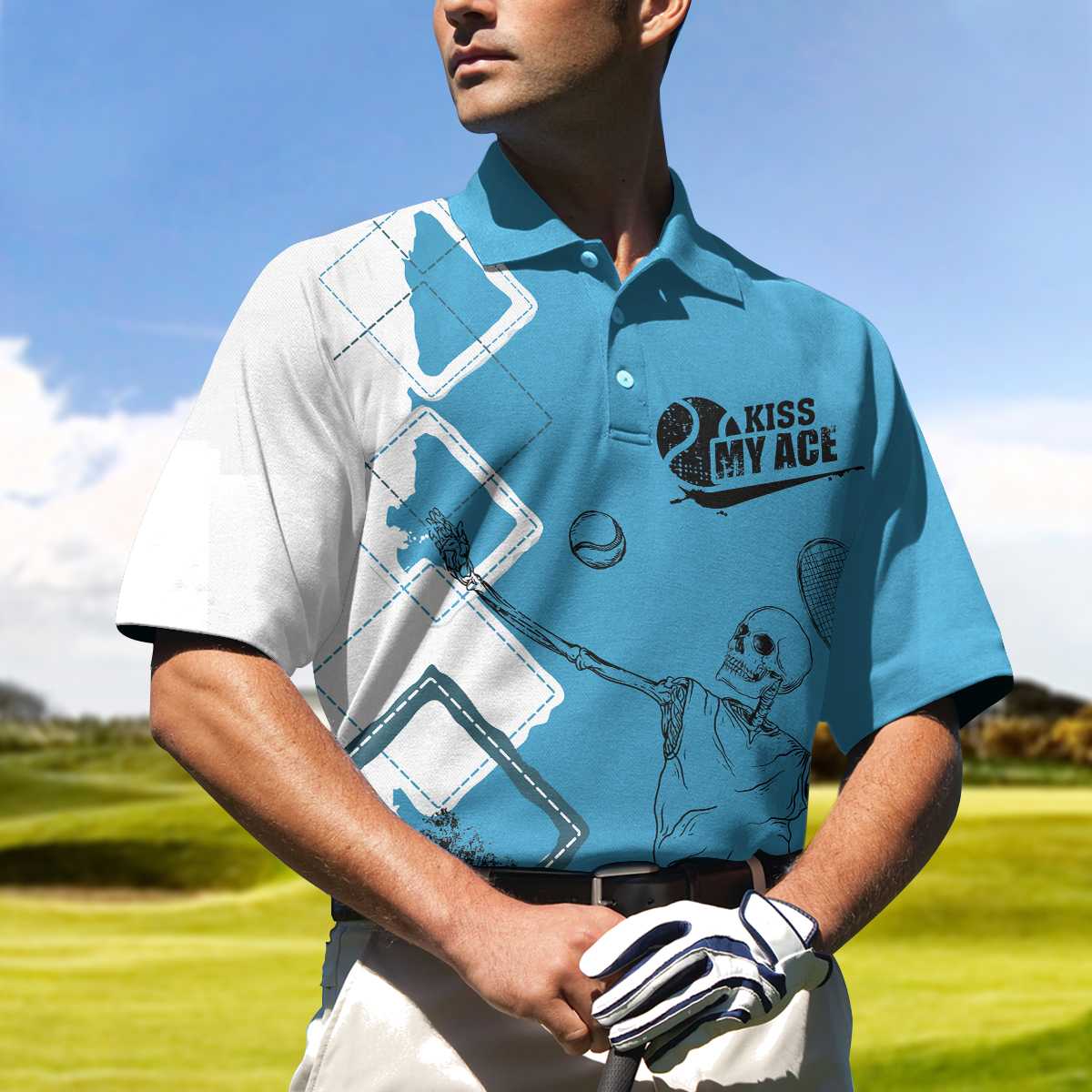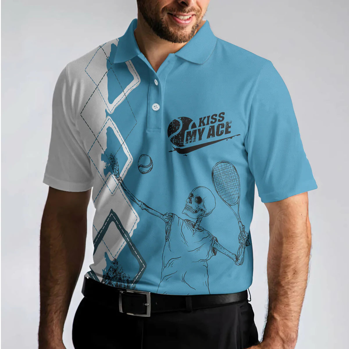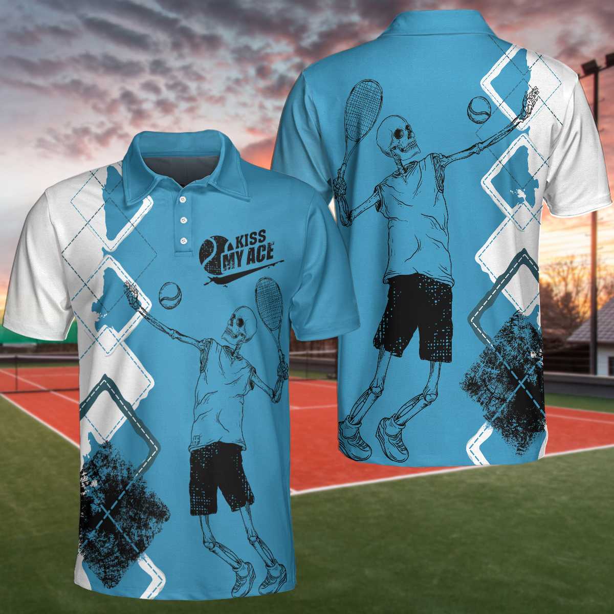Argyle Pattern Skeleton Tennis Player Men Polo Shirt, Kiss My Ace Tennis Polo Shirt, Best Tennis Shirt For Male