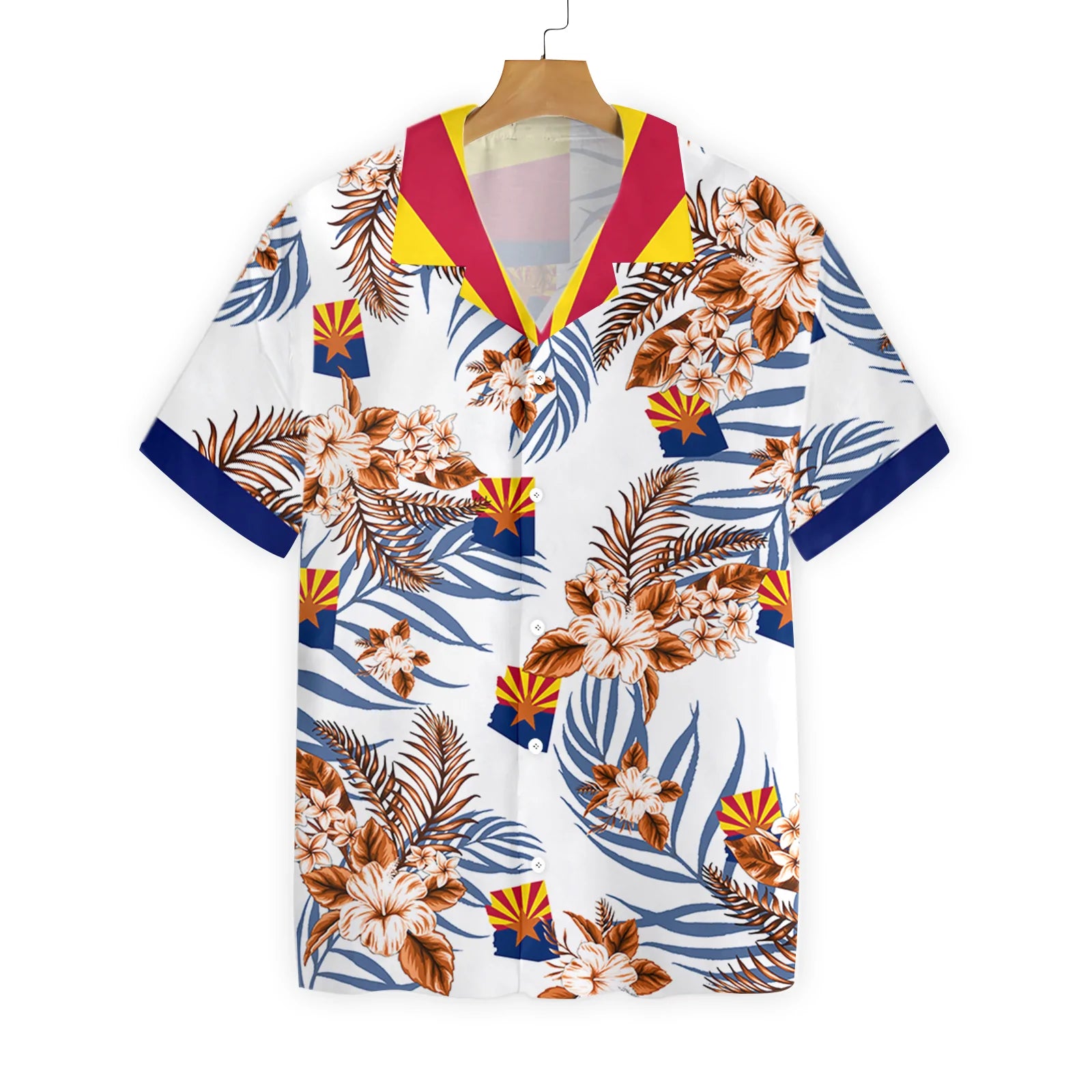 Arizona Map Arizona Proud Hawaiian Shirt, Tropical Flower Aloha Shirt For Men & Women, Best Gift For Summer, Husband, Wife, Boyfriend, Girlfriend