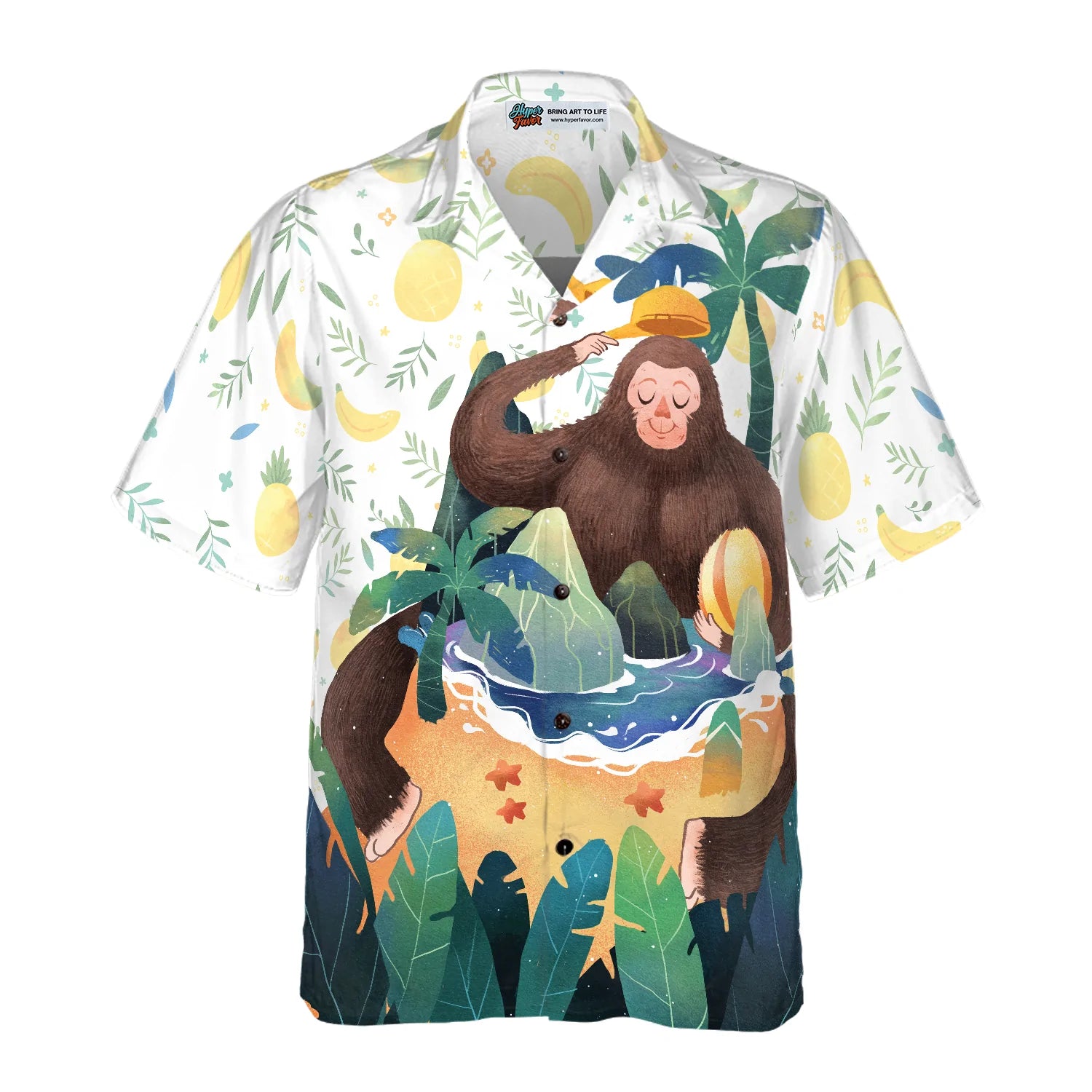 Artistic Bigfoot on the Beach Hawaiian Shirt, Sasquatch Aloha Shirts for Men & Women, Best Gift For Summer, Husband, Wife, Boyfriend, Girlfriend