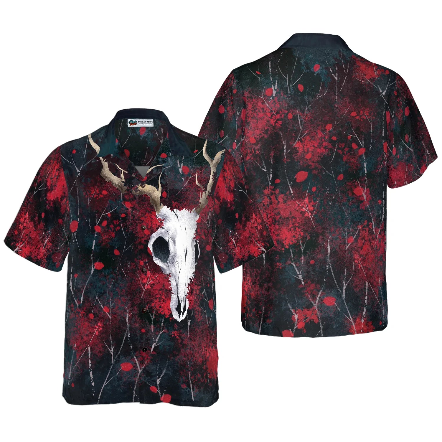 Artistic Gothic Skull Hawaiian Shirt, Black and Red Goth Aloha Shirt For Men, Best Gift For Summer, Husband, Boyfriend