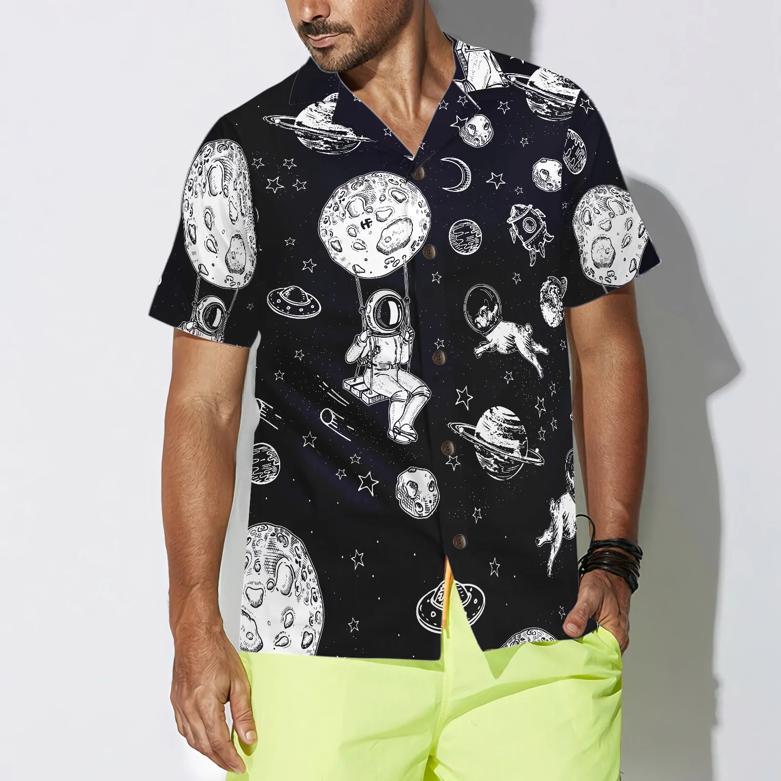 Astronaut And His French Bulldog Hawaiian Shirt, Dog Lovers Aloha Shirt For Men & Women, Best Gift For French Bulldog Lovers, Husband, Wife, Boyfriend, Girlfriend