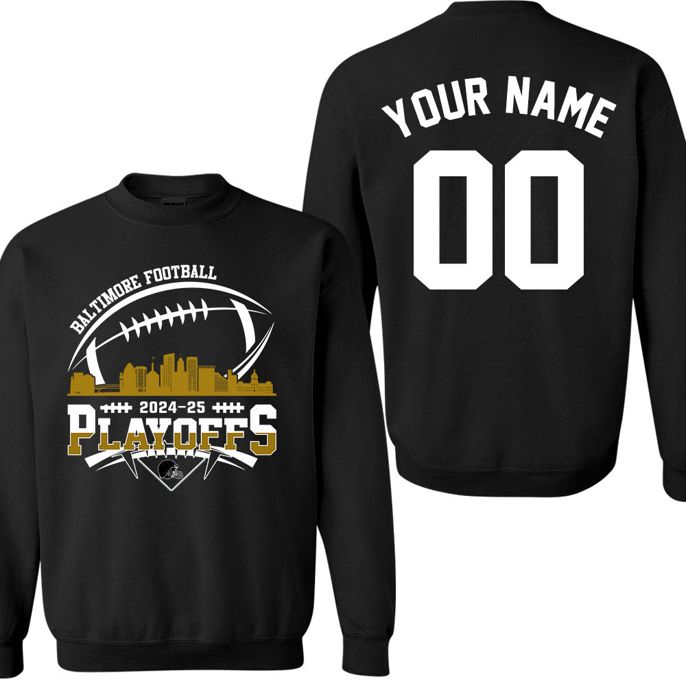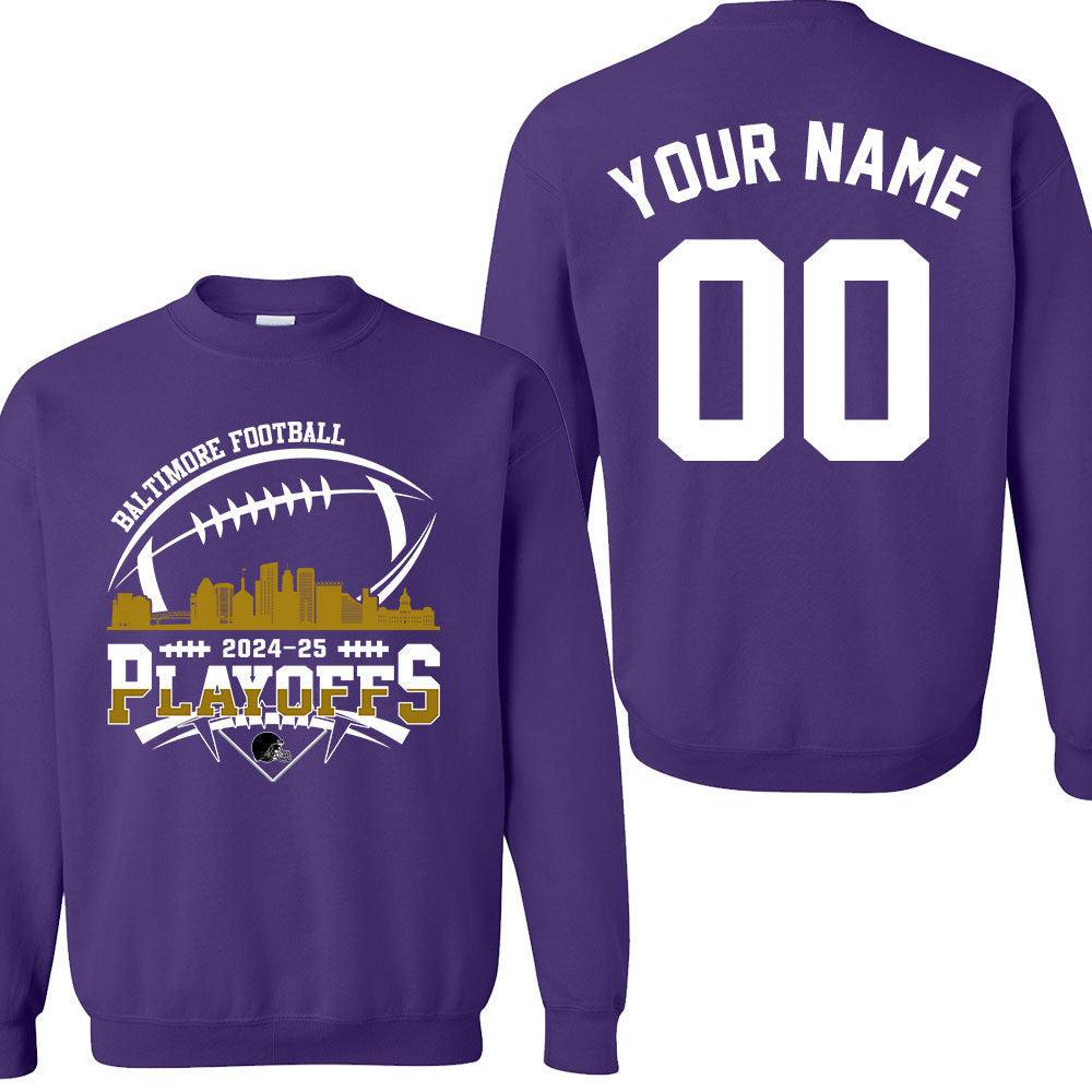 Baltimore American Football 2024-25 Playoffs Skyline Double Sided Sweatshirt, Baltimore Football Game Day Playoffs Division Custom Sweatshirt