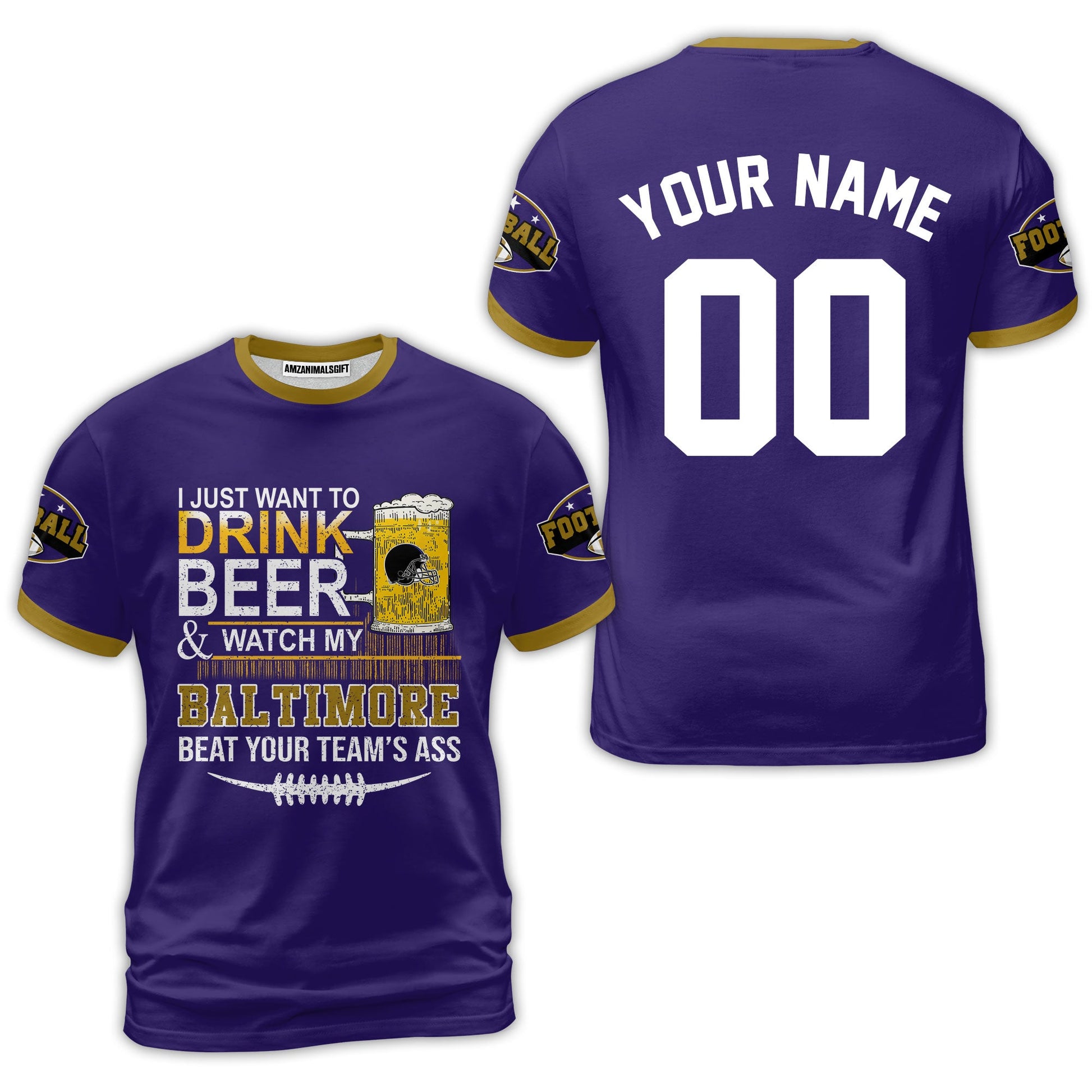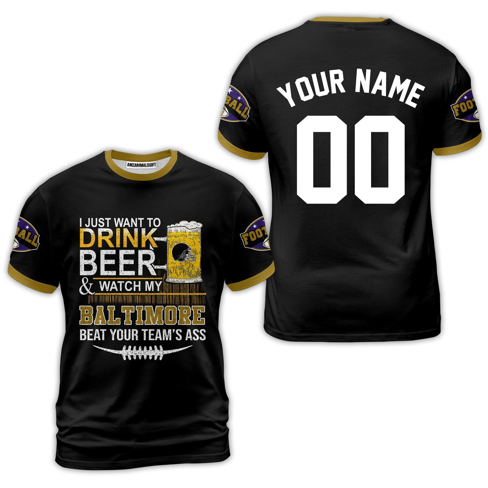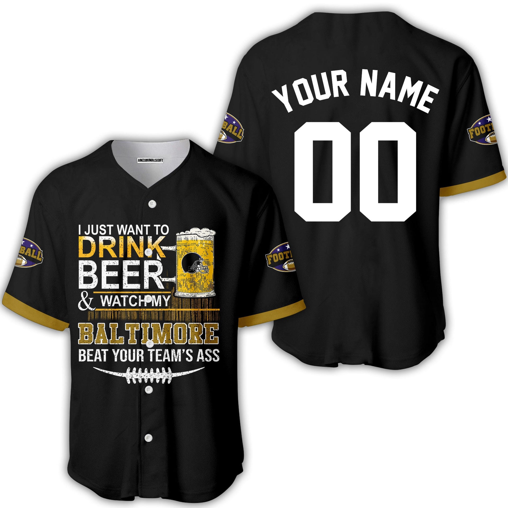 Baltimore American Football Beer Custom Baseball Jersey, Just Want To Drink Beer & Watch My Baltimore American Football Custom Baseball Jersey Shirts, Just Want To Drink Beer & Watch My Baltimore American Football Beat Your Team Custom 2 Side Shirts