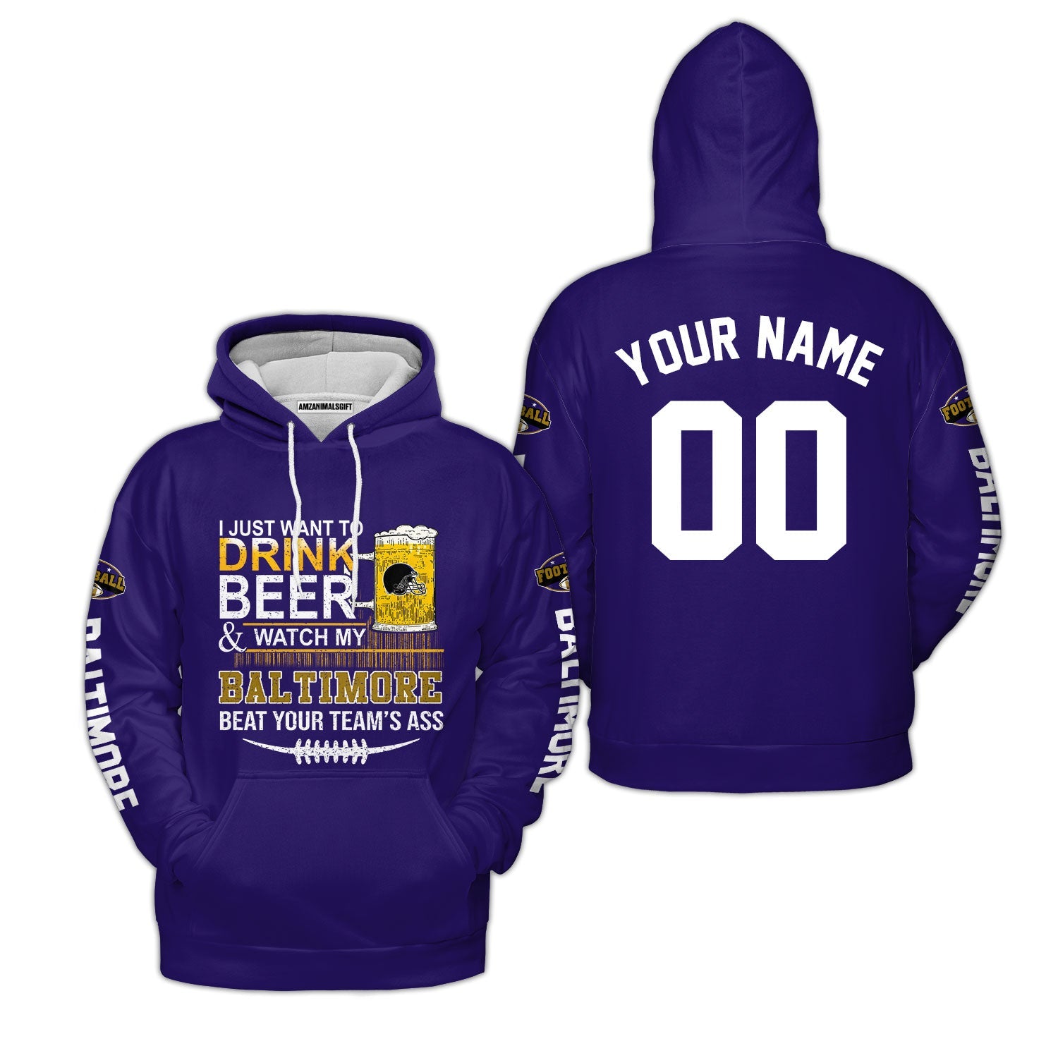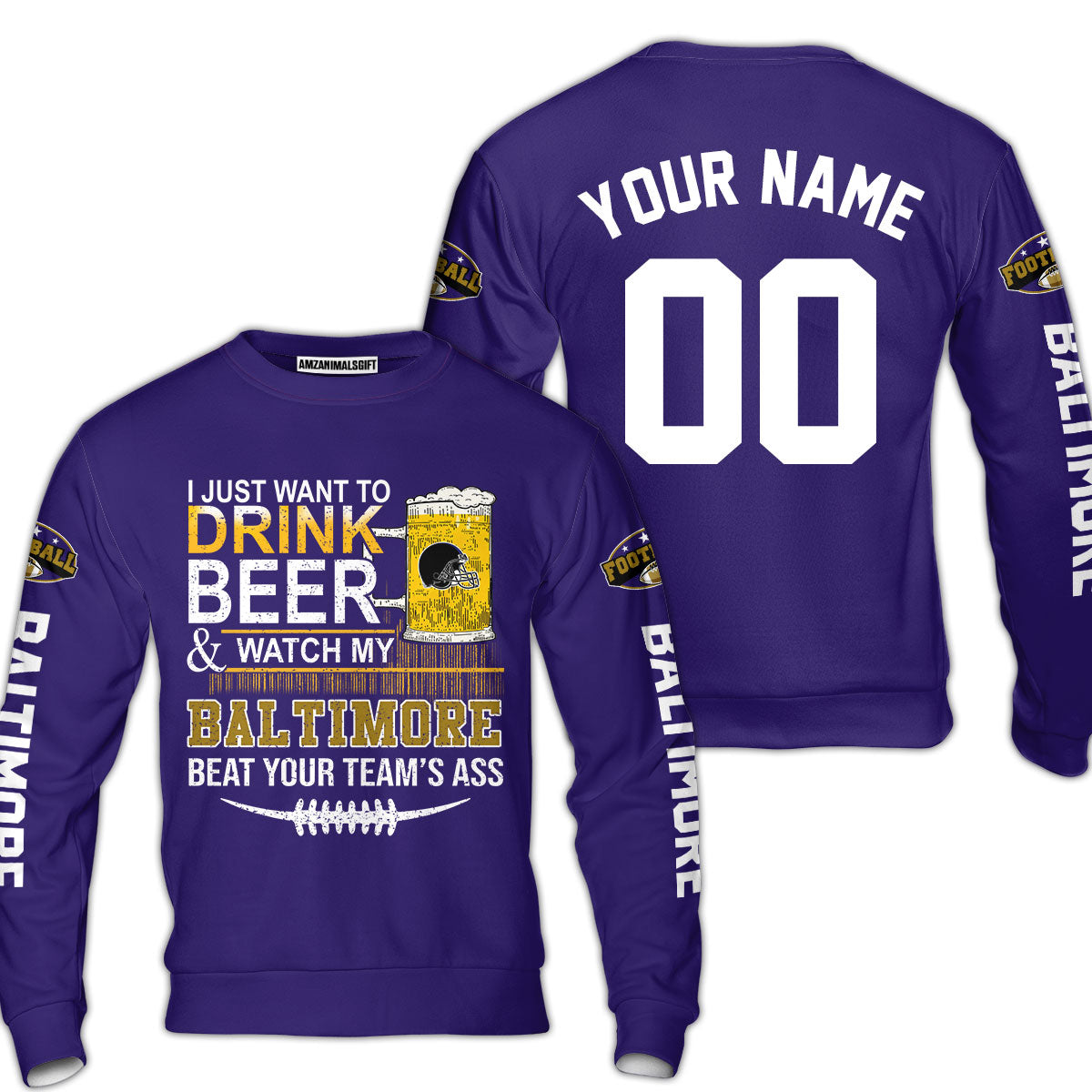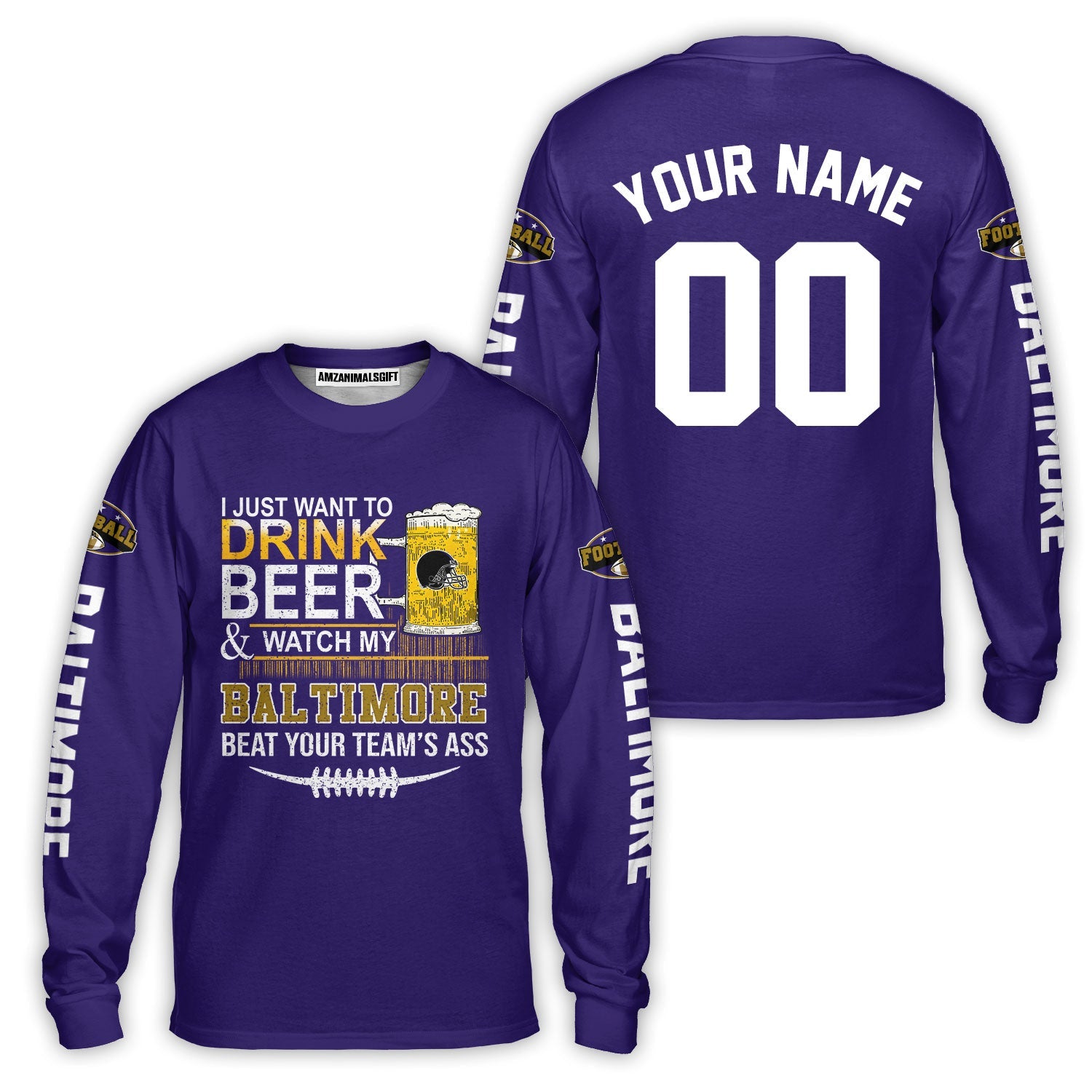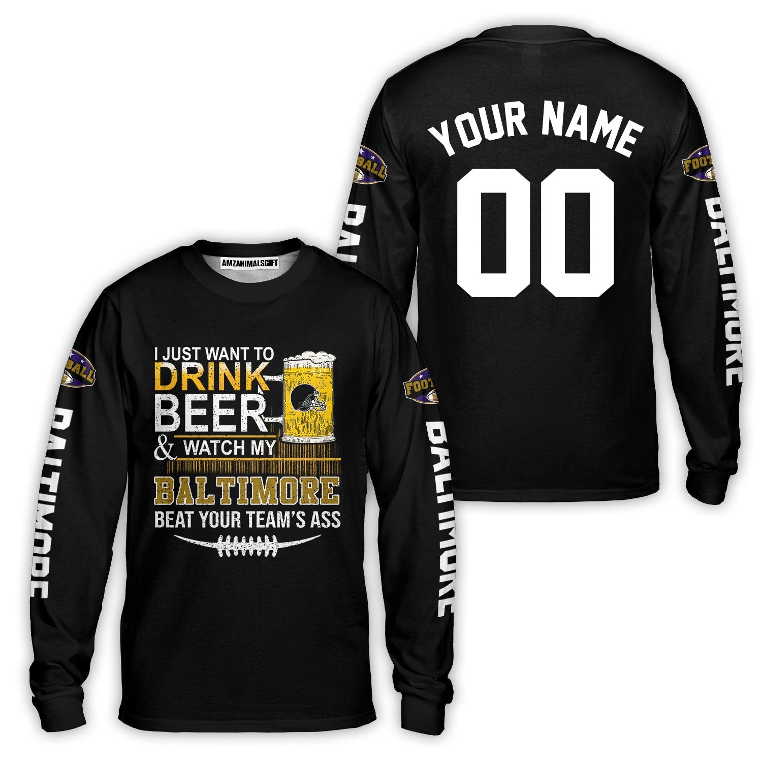 Baltimore American Football Beer Custom Baseball Jersey, Just Want To Drink Beer & Watch My Baltimore American Football Custom Baseball Jersey Shirts, Just Want To Drink Beer & Watch My Baltimore American Football Beat Your Team Custom 2 Side Shirts