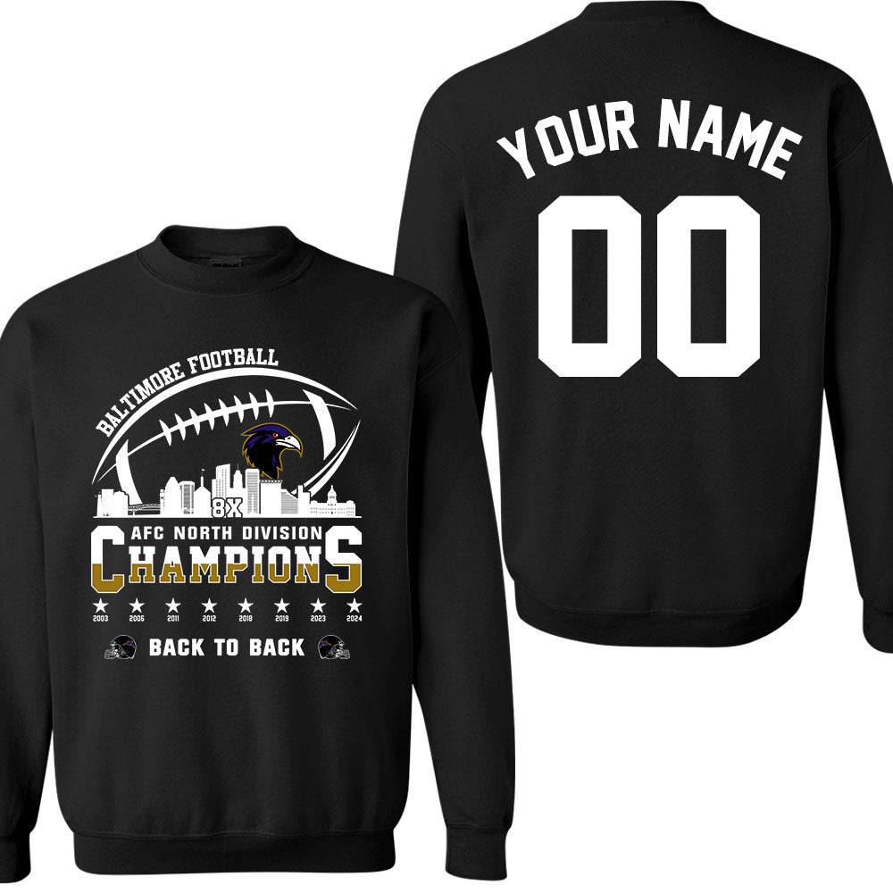 Baltimore Football 2024 AFC North Division Champions Skyline 2 Sided Shirts, 2024 AFC North Champs Custom Double Sided Shirts T-Shirt Hoodie Sweatshirt Long Sleeve V-neck Shirts