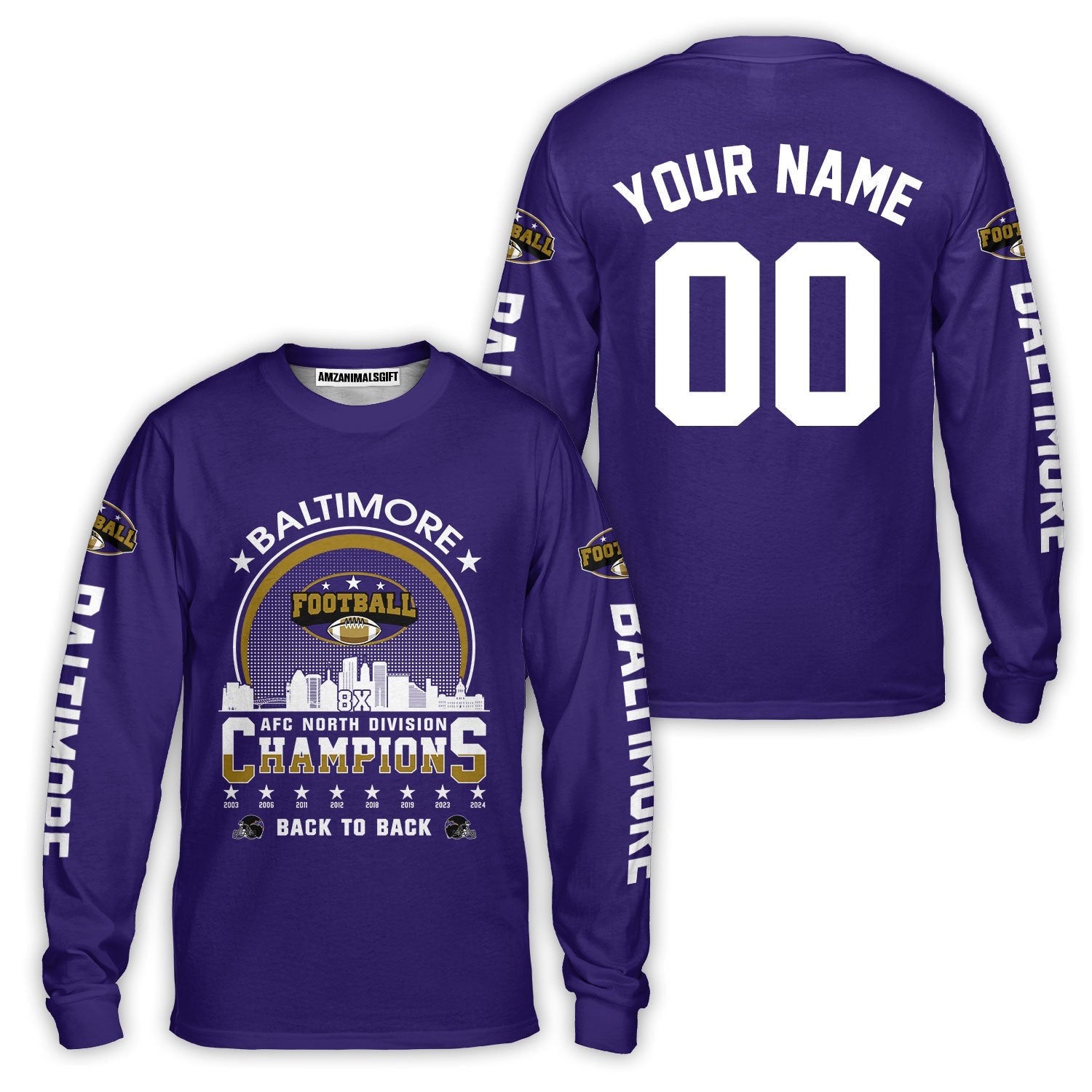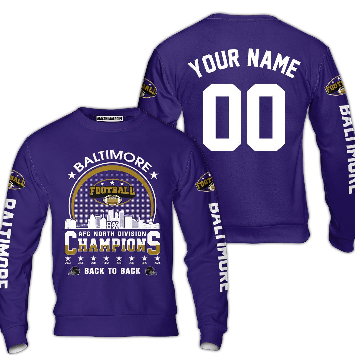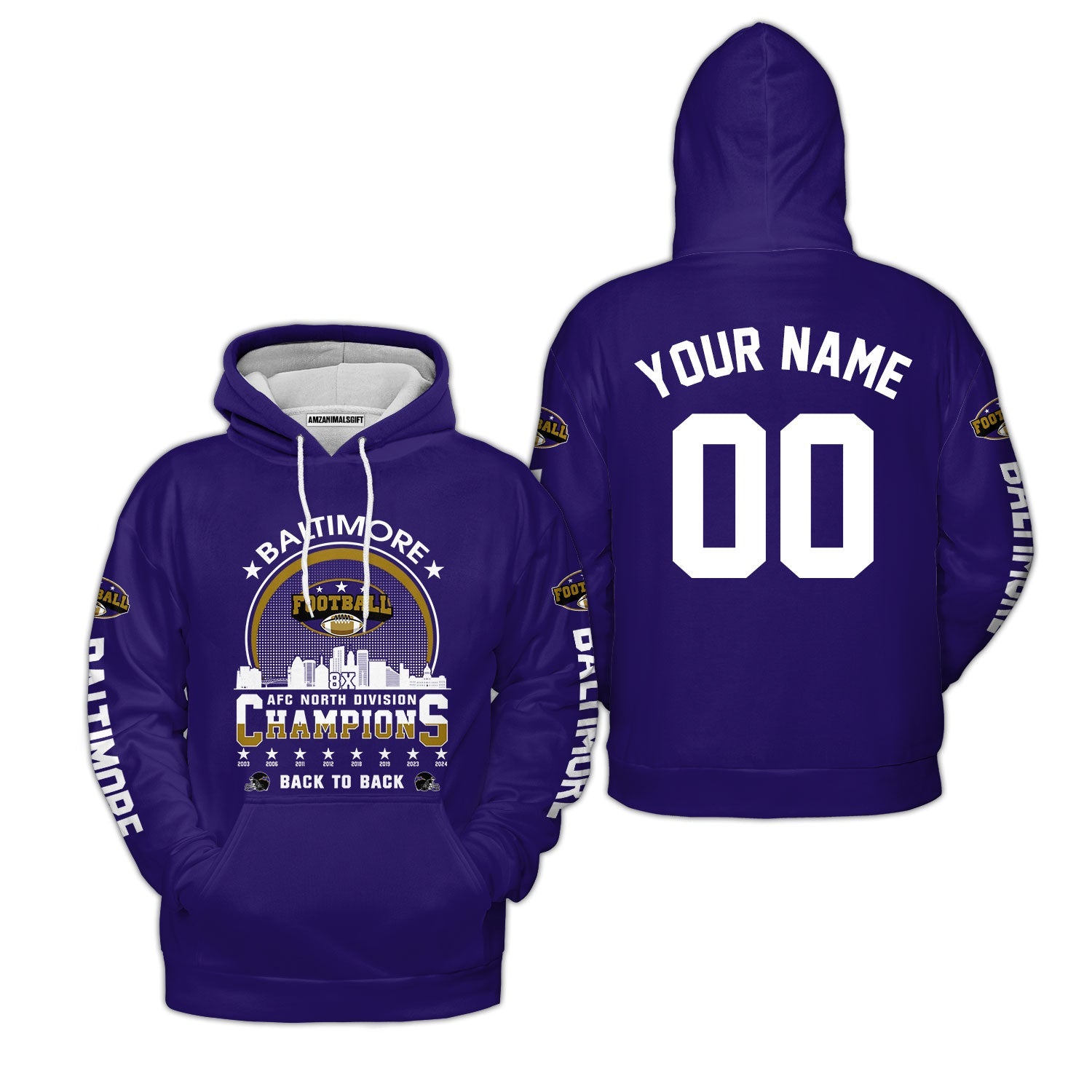 Baltimore Football 2024 AFC North Division Champions Skyline Custom Hoodie, 2024 AFC North Champs Champions Custom Double Sided Shirts T-Shirt Hoodie Sweatshirt Long Sleeve Baseball Jersey V-neck Jersey