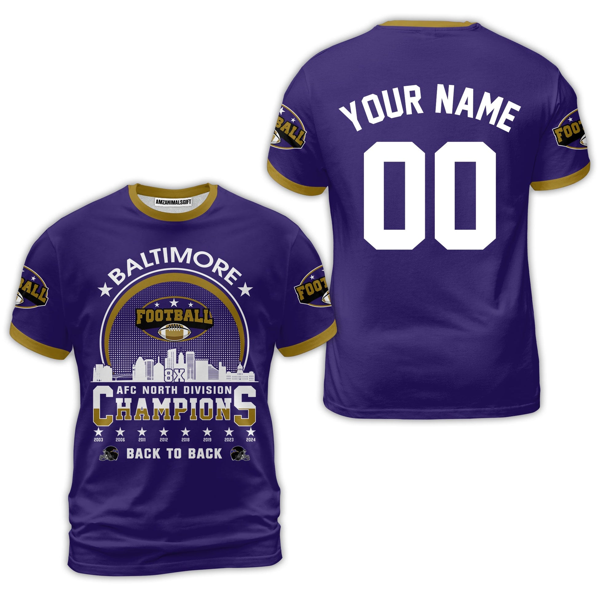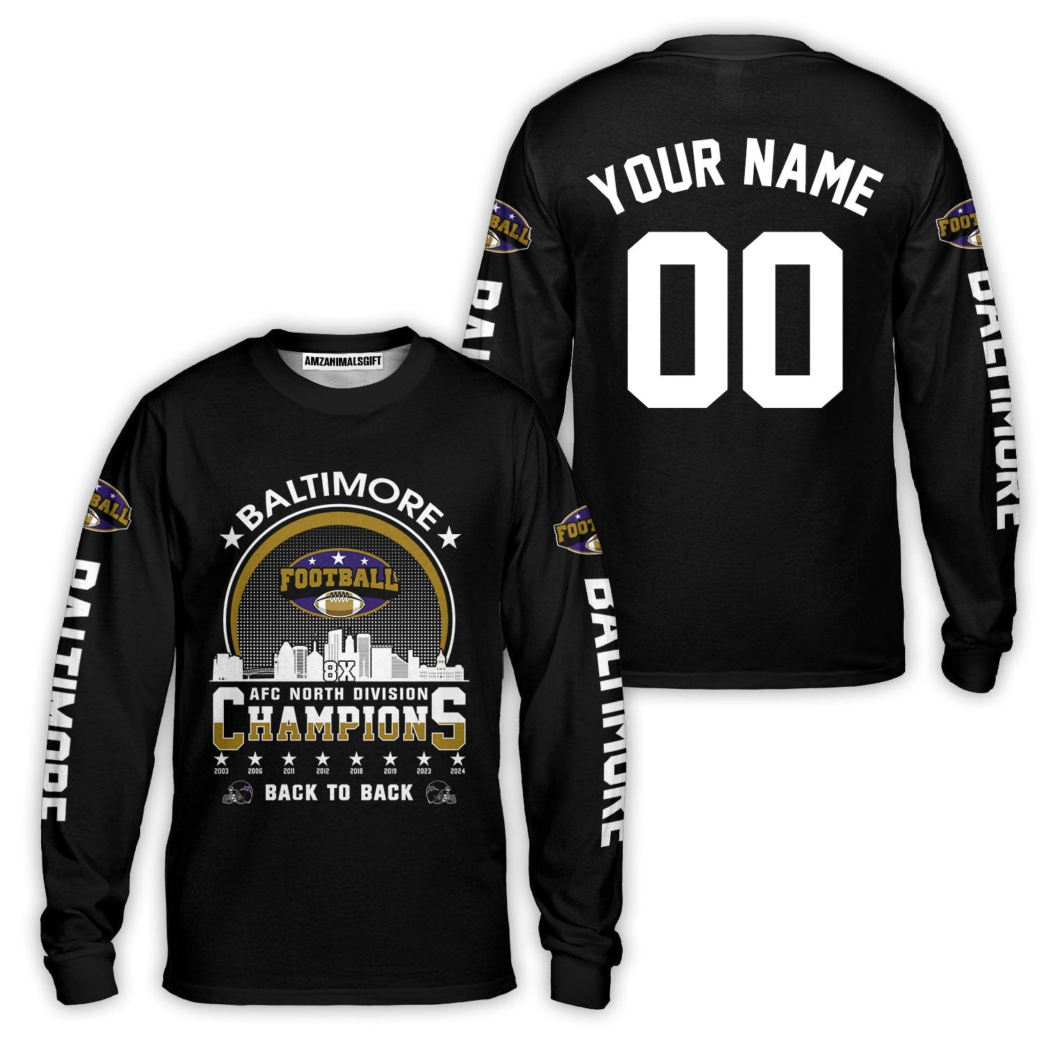 Baltimore Football 2024 AFC North Division Champions Skyline Custom Long Sleeve Shirts, 2024 AFC North Champs Champions Custom Double Sided Shirts T-Shirt Hoodie Sweatshirt Long Sleeve Baseball Jersey V-neck Jersey
