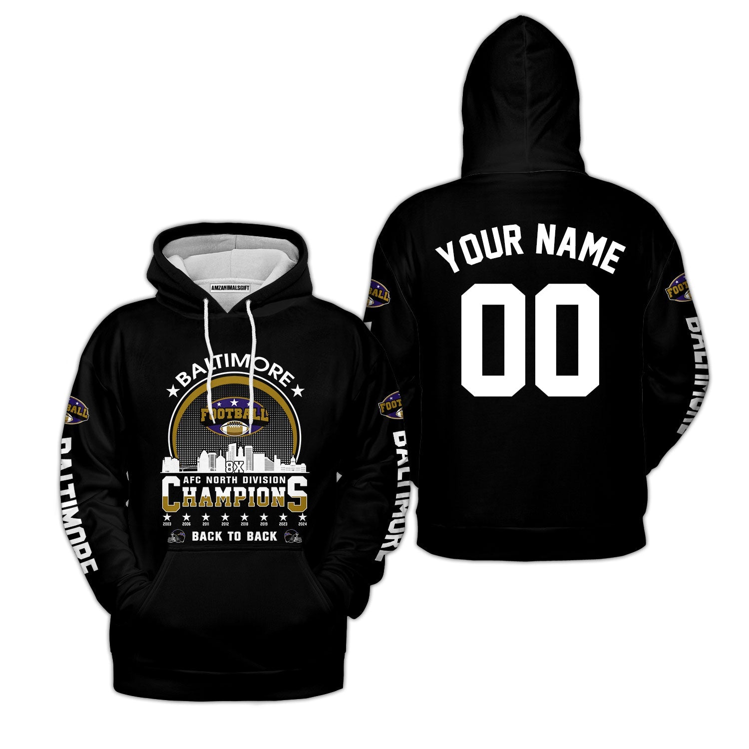 Baltimore Football 2024 AFC North Division Champions Skyline Custom Sweatshirt, 2024 AFC North Champs Champions Custom Double Sided Shirts T-Shirt Hoodie Sweatshirt Long Sleeve Baseball Jersey V-neck Jersey