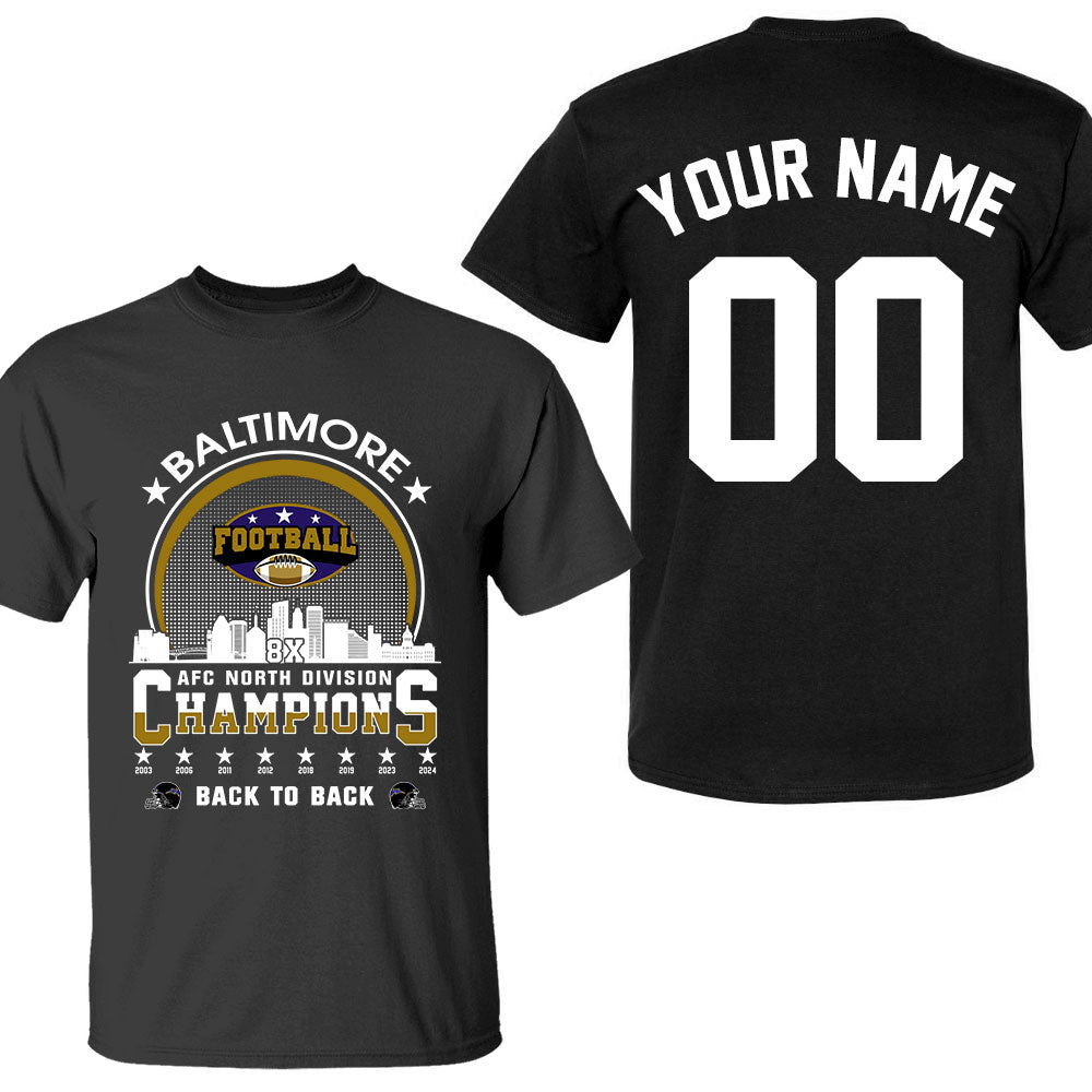 STYLE & COMFORT: Baltimore Football 2024 AFC North Division Champions Skyline Double Sided T-Shirts for Men and Women are the perfect balance between style & comfort. Made from unique moisture-wicking technology, the shirt's fit keeps you feeling relaxed, fashionable all season long, and long-lasting for any outdoor activity. Also, you can wear Football Shirt to relax or simply hang out with friends and family.