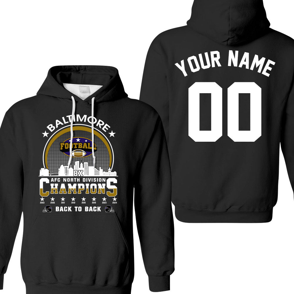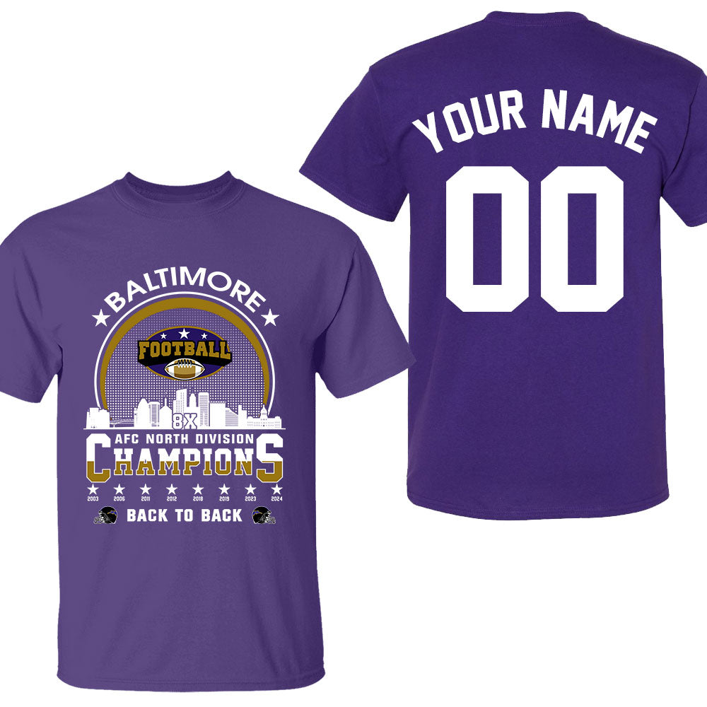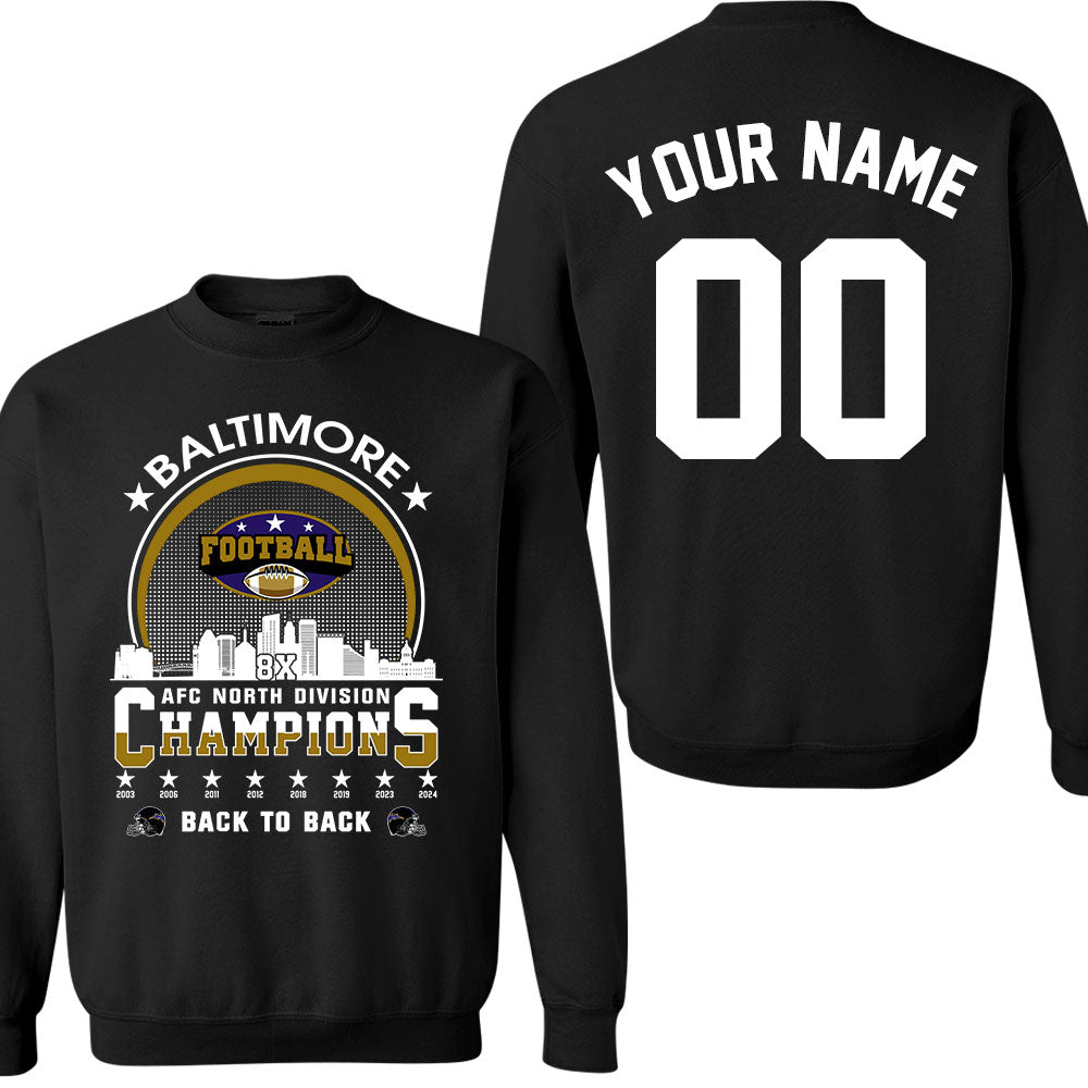 Baltimore Football 2024 AFC North Division Champions Skyline Double Sided Long Sleeve Shirts, 2024 AFC North Champs 2 Sided Custom Shirts T-Shirt Hoodie Sweatshirt Long Sleeve V-neck Shirts