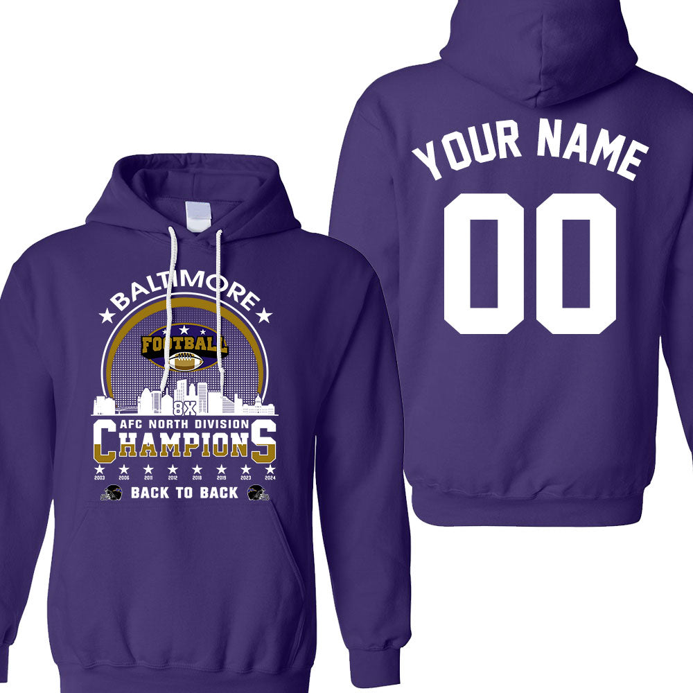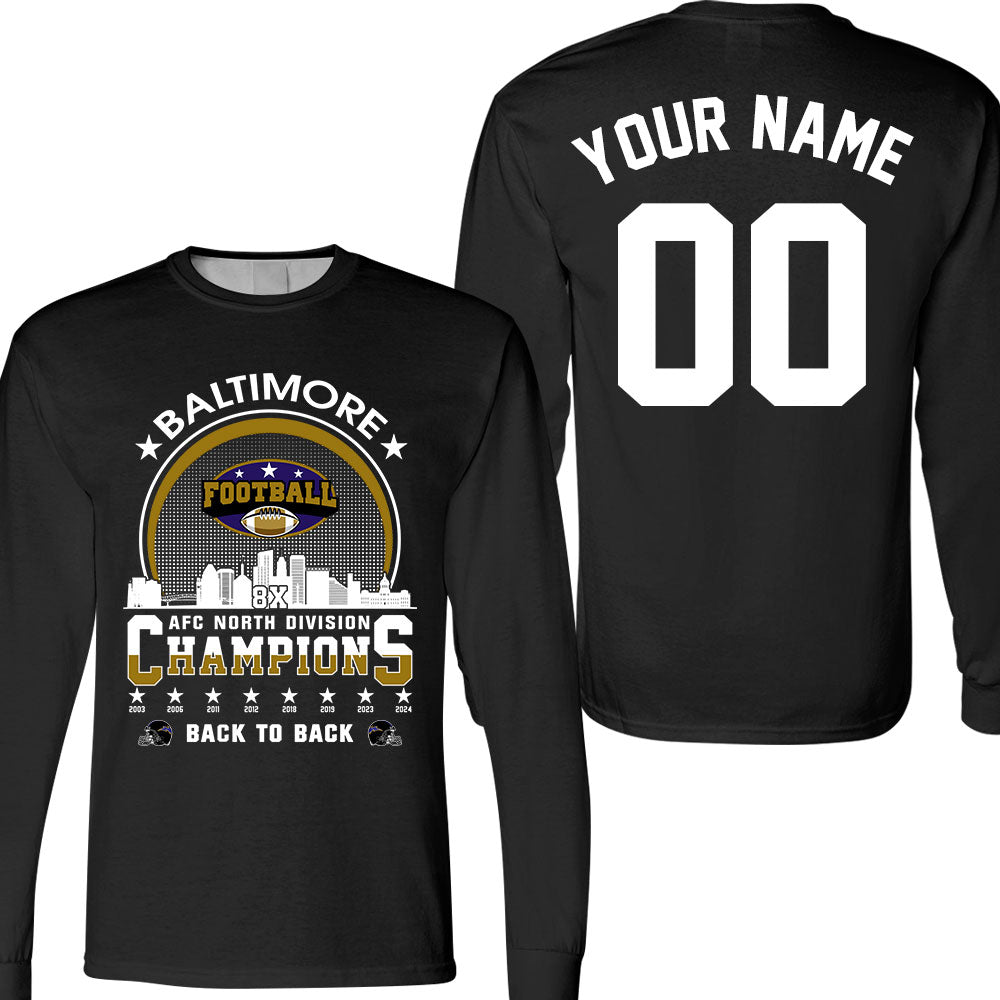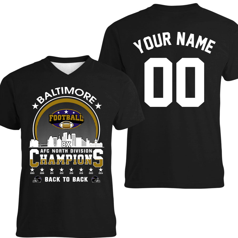 Baltimore Football 2024 AFC North Division Champions Skyline Double Sided V-neck Shirts, 2024 AFC North Champs 2 Sided Custom Shirts T-Shirt Hoodie Sweatshirt Long Sleeve V-neck Shirts