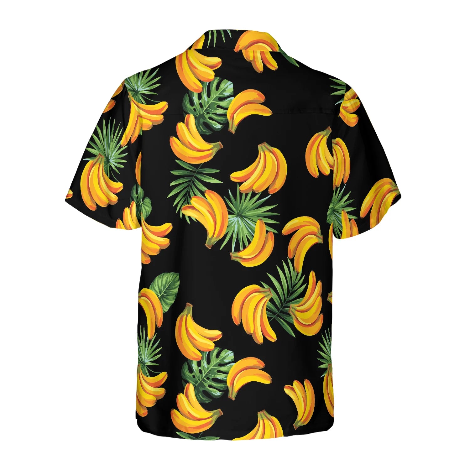 Banana & Tropical Palm Leaves Hawaiian Shirt, Banana Pattern Aloha Shirt For Men & Women, Best Gift For Summer, Husband, Boyfriend, Wife, Girlfriend