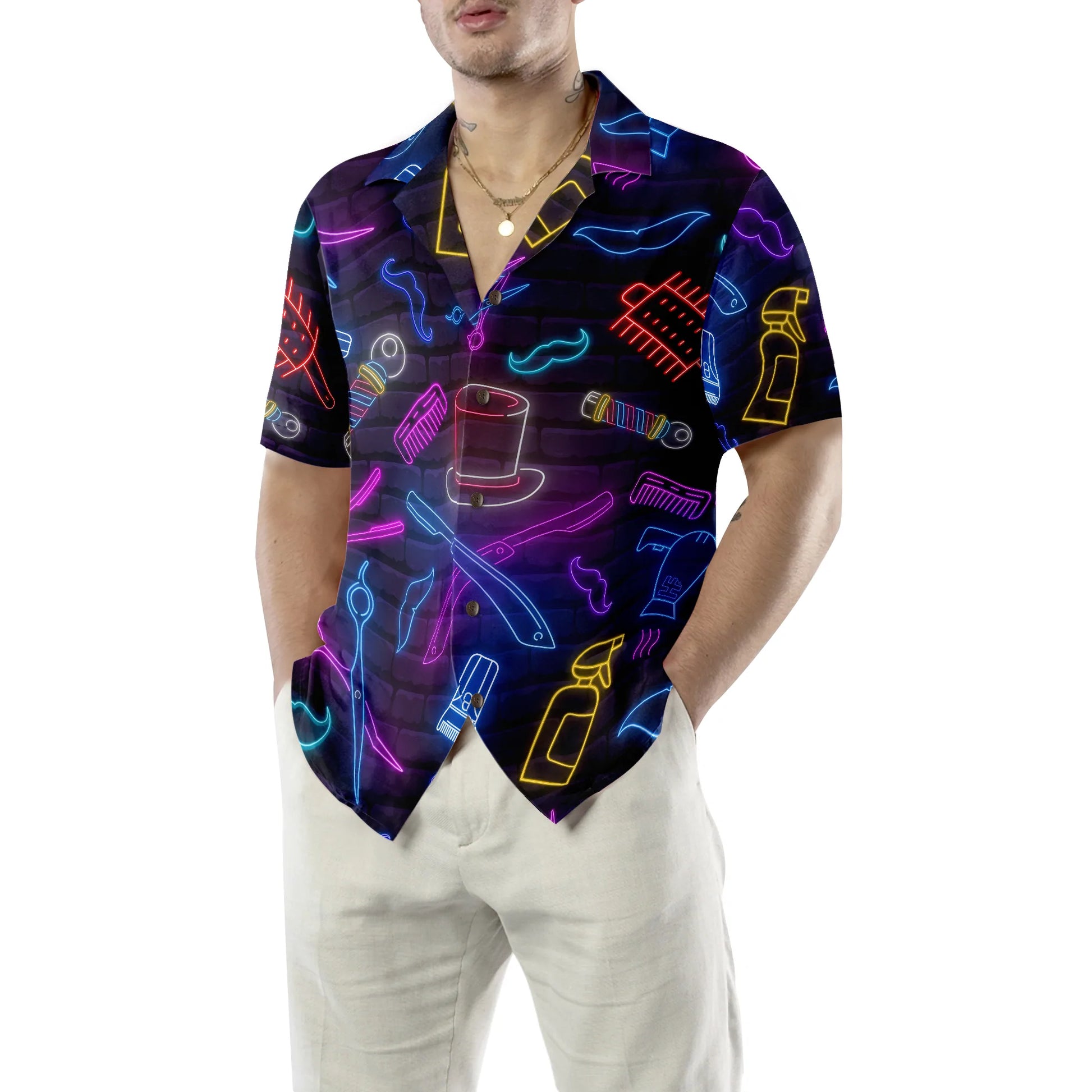 Barber Neon Hawaiian Shirt, Barber Shop Neon Aloha Shirt Summer For Men, Best Gift For Barber, Summer, Husband, Boyfriend