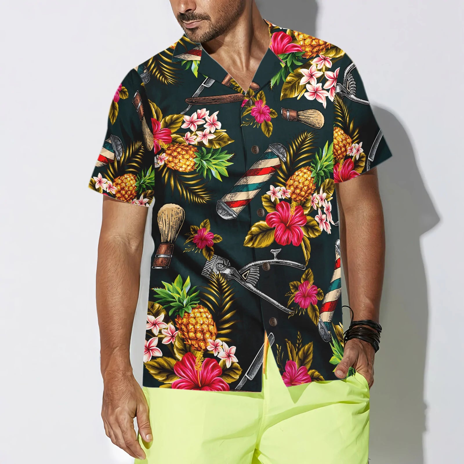 Barber Tools Tropical Leaves Hawaiian Shirt, Barber Symbol Aloha Shirt Summer For Men, Best Gift For Barber, Summer, Husband, Boyfriend