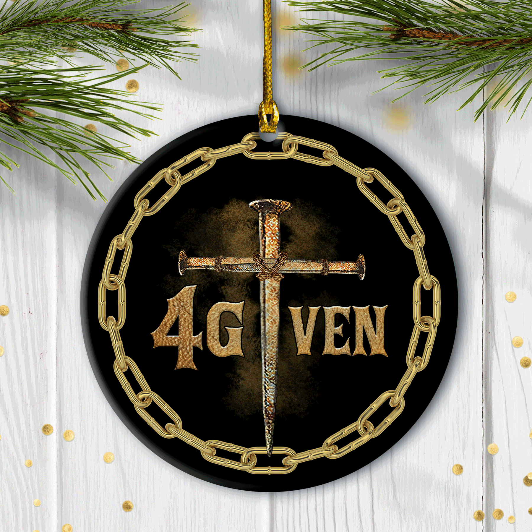 Best Christmas Ornament Gifts, Inspirational Circle Ceramic Ornament, Gift for Religious Christian, Jesus Forgiven Cross Of Nails Ornaments