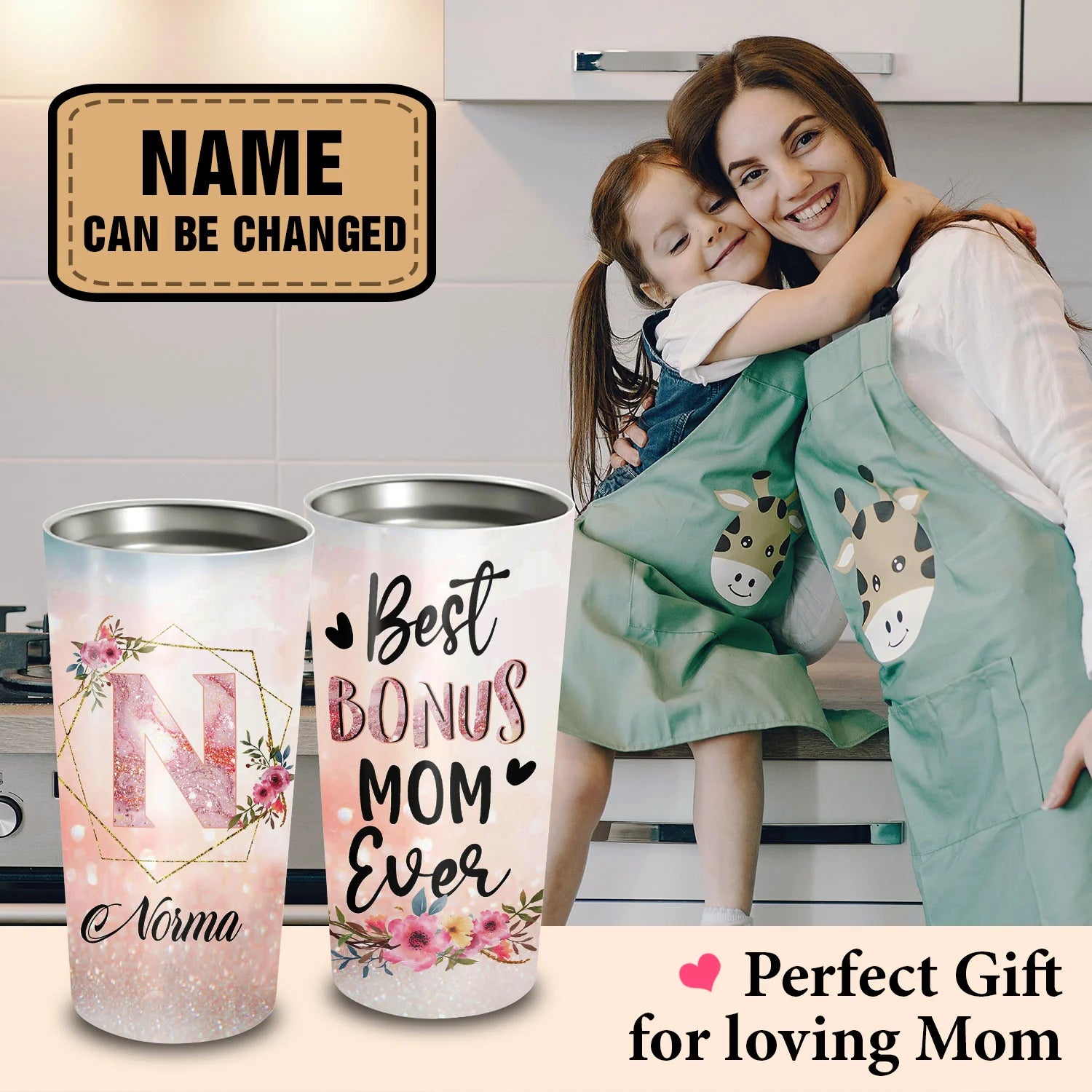 Best Personalized Mother's Day Gifts Tumbler - Custom Gift For Mother's Day, Presents for Mom - Best Bonus Mom Ever Tumbler