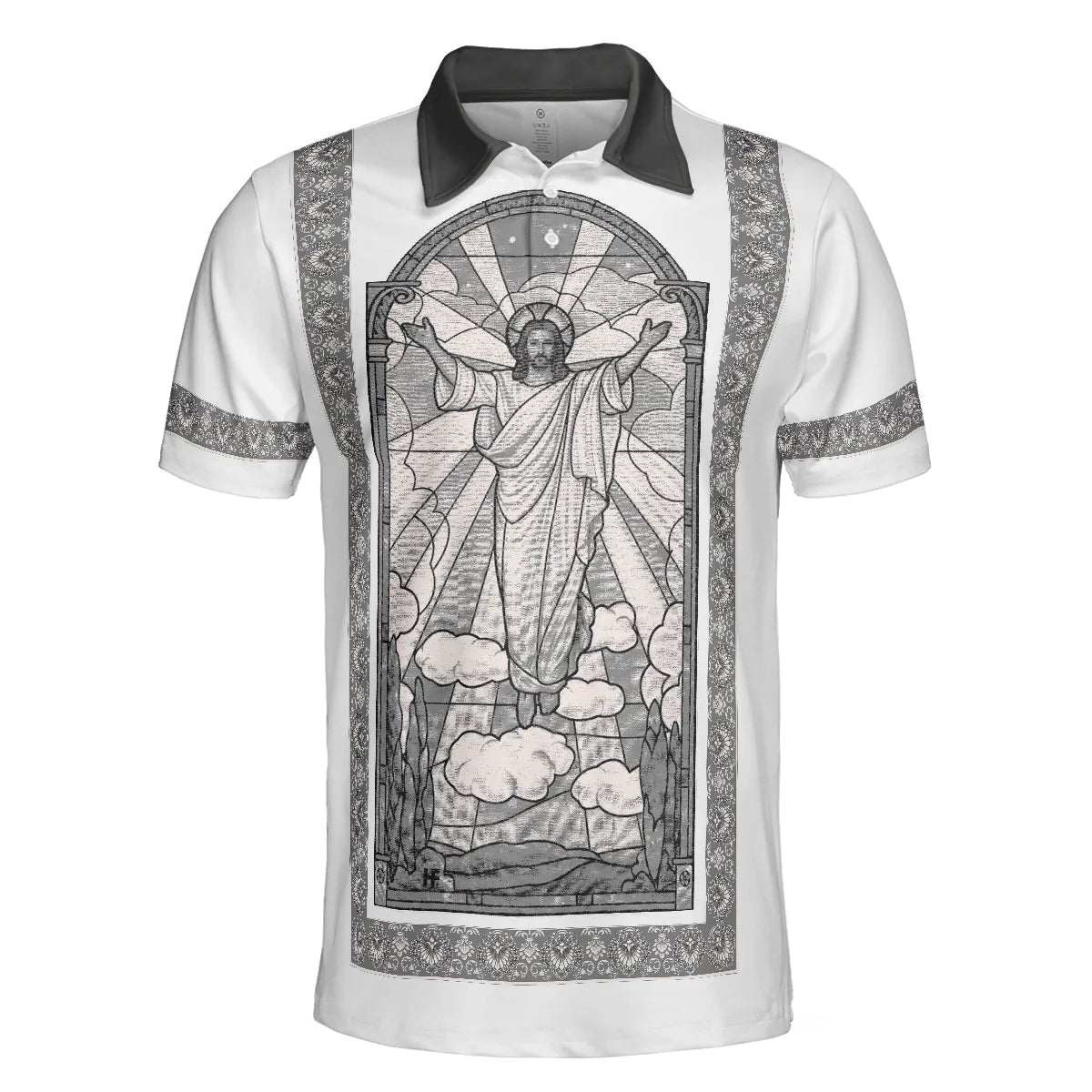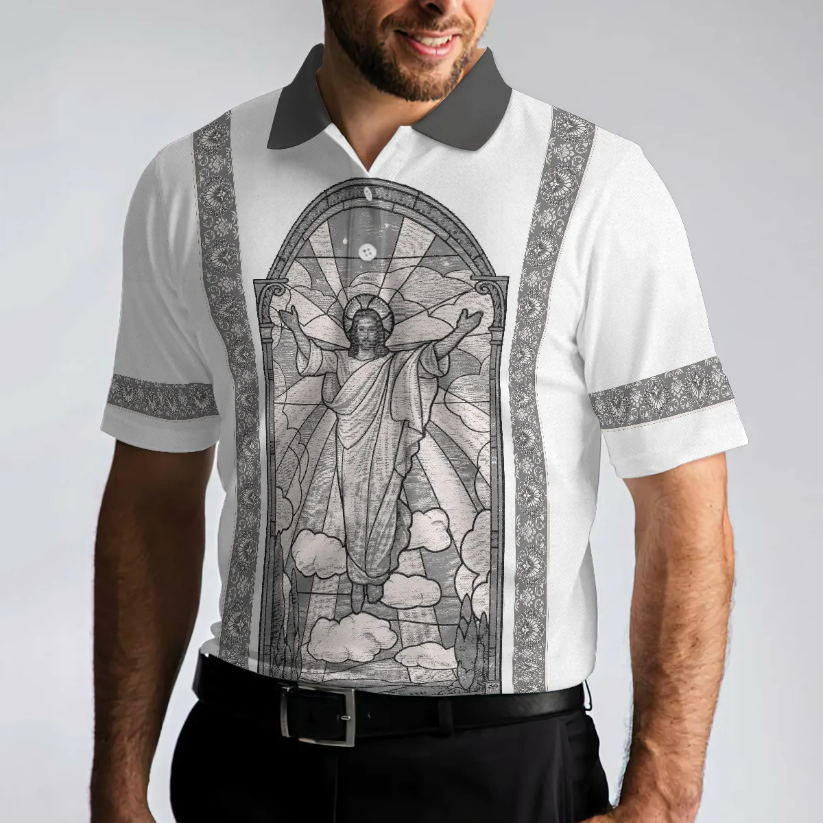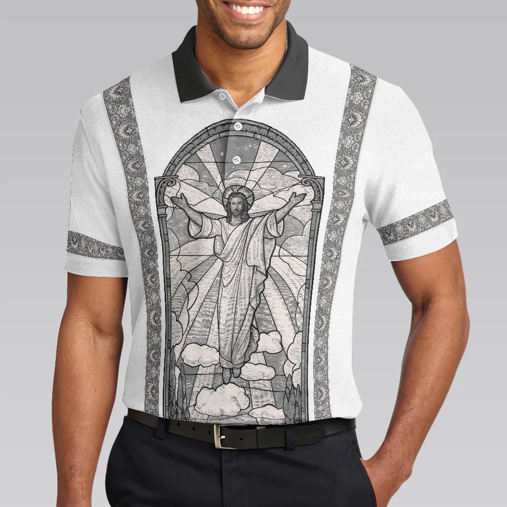 Black And White Jesus Men Polo Shirt, Jesus's Resurrection Egyptian Polo Shirt, Best Christian Shirt For Men