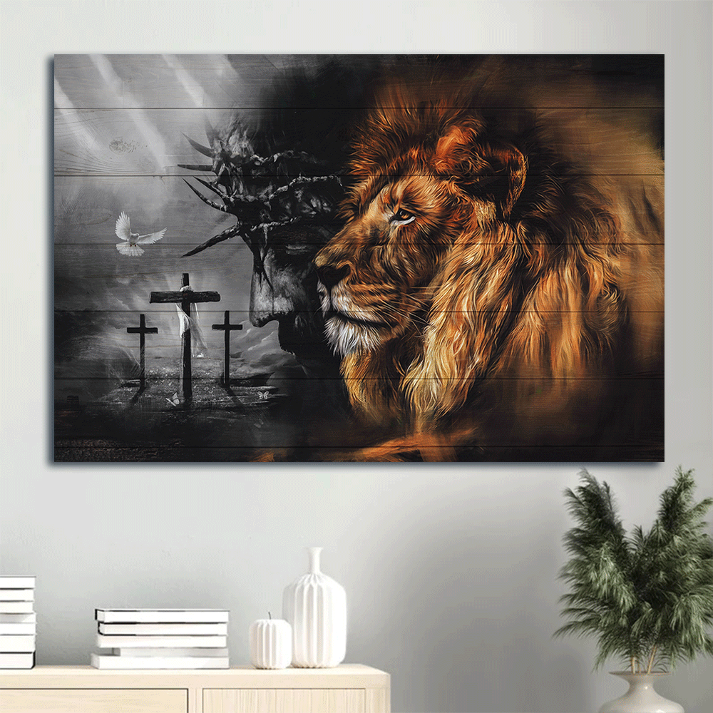 Lion and Jesus Portrait Landscape Canvas, Christian Wall Art - Black And White Jesus Portrait Painting Canvas, Lion Painting Canvas, Lion Of Judah - Jesus Landscape Canvas - Wall Decor Framed Gift For Christian, Believe in Jesus, Gifts For Home Decor
