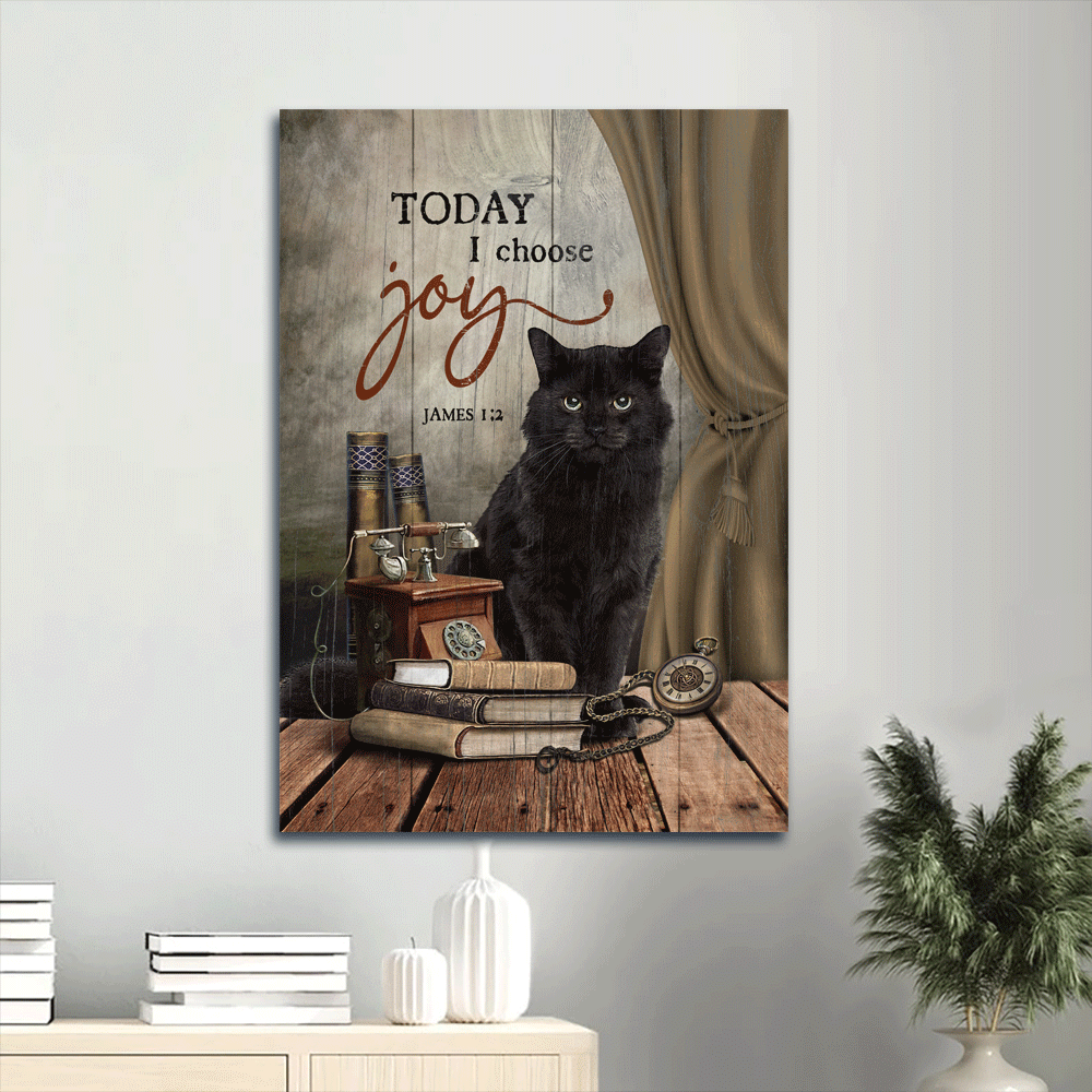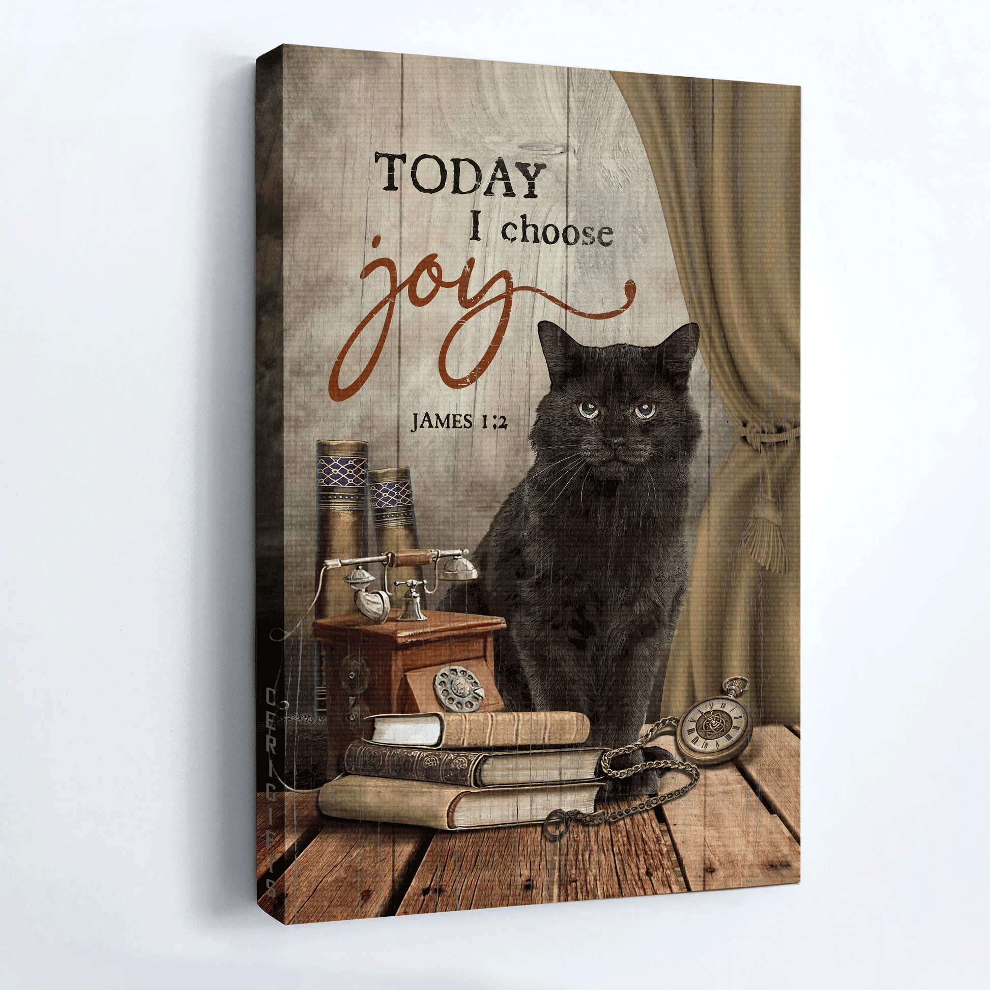 Black cat Portrait Canvas- Black cat, Telephone, Clock, Books - Gift for Cat lover- Today I choose Joy - Portrait Canvas Prints, Wall Art