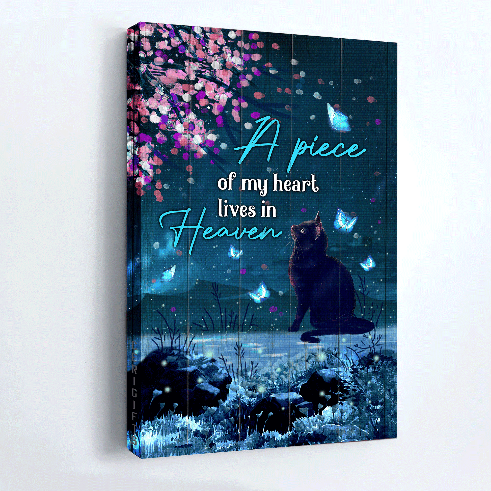Black cat Portrait Canvas- Black Cat, Under the night sky, blue butterfly - Gift for Cat lover- A piece of my heart lives in heaven - Heaven Portrait Canvas Prints, Wall Art.
