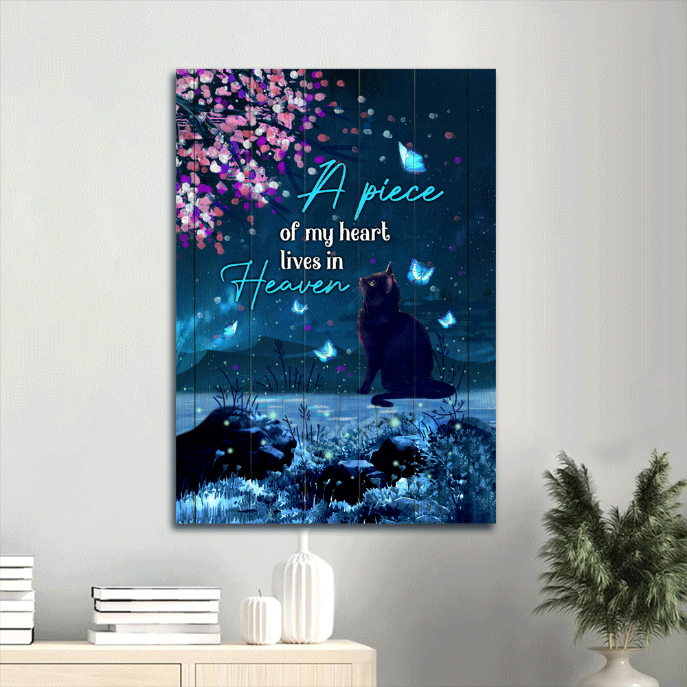 Black cat Portrait Canvas- Black Cat, Under the night sky, blue butterfly - Gift for Cat lover- A piece of my heart lives in heaven - Heaven Portrait Canvas Prints, Wall Art