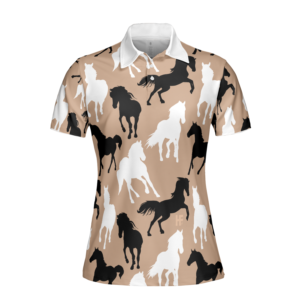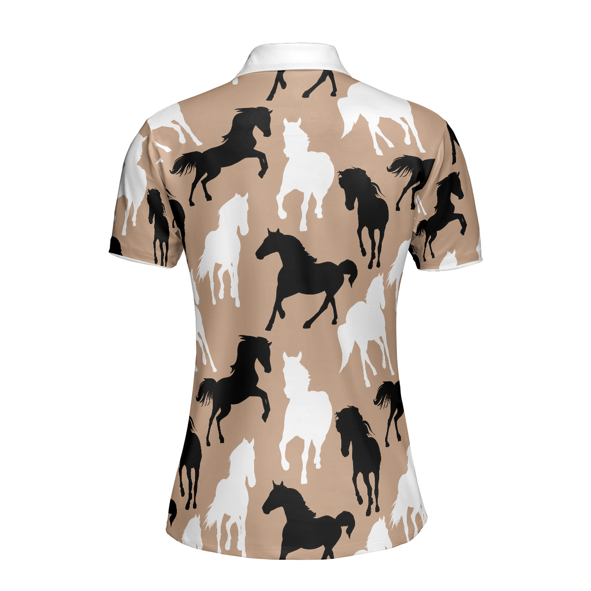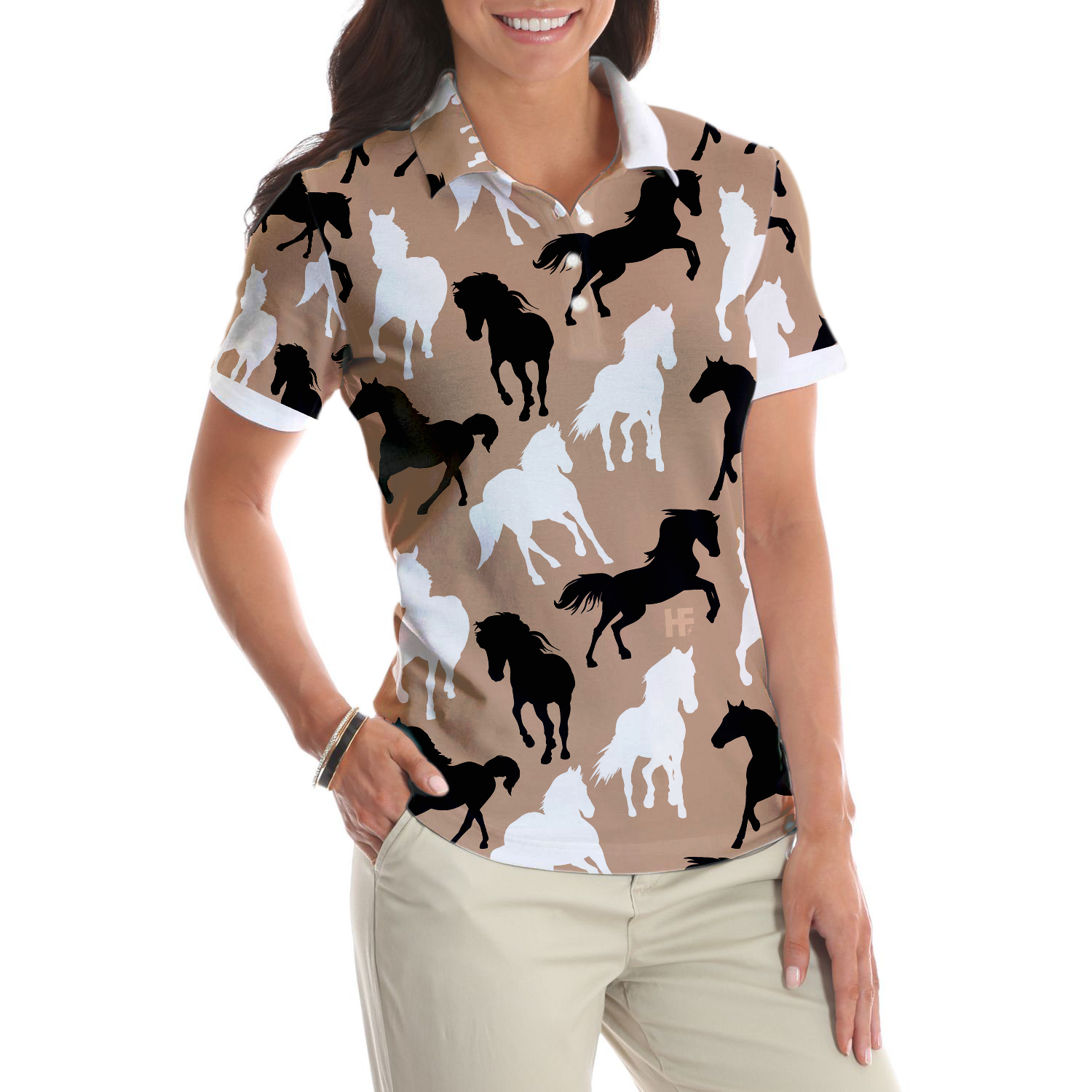 Black Horses White Horses Short Sleeve Women Polo Shirt, Horses Lover Shirt For Ladies