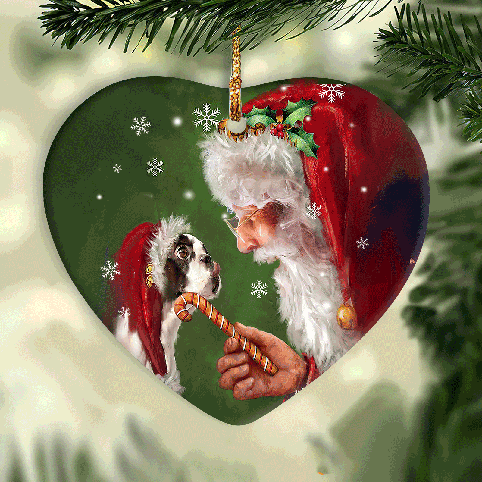 Boston Terrier - Heart Ceramic Ornament - Christmas With Santa Clause - Gifts For Christmas Home Decor, Gifts For Boston Terrier Lover, Gifts For Dog Lover, Dog Mom