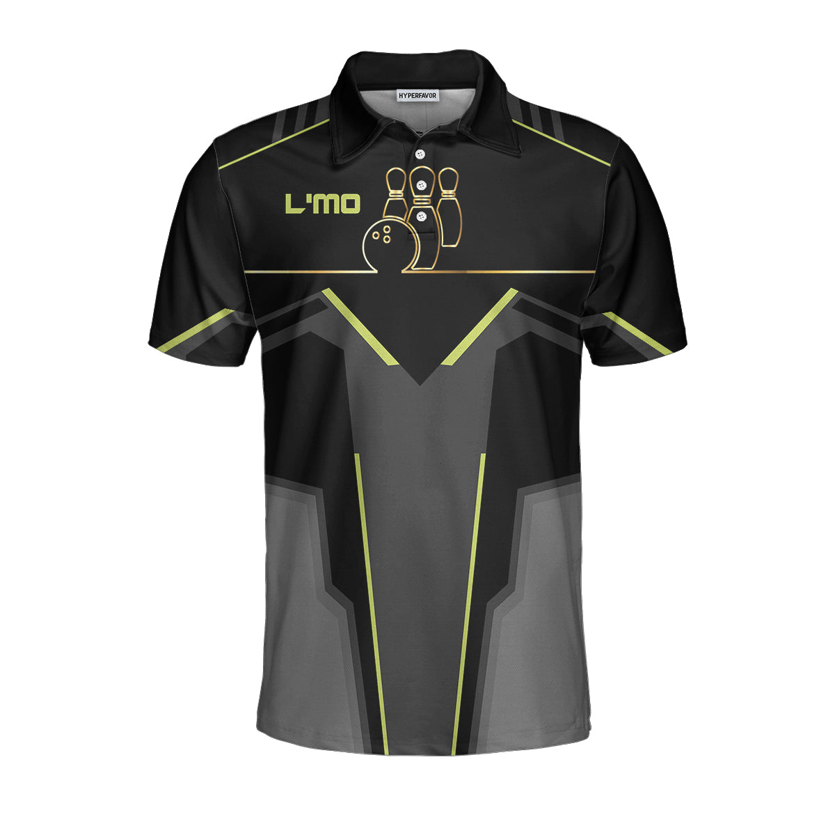 Bowling Custom Men Polo Shirt - Slow Roll Black and Golden Pattern Bowling Polo Shirt - Perfect Gift For Friend, Family, Bowling Lovers