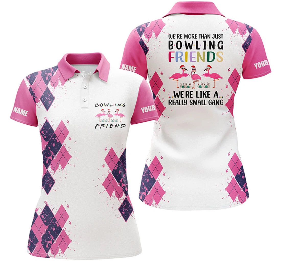 Bowling Custom Name Custom Team Women Polo Shirt, We're More Than Just Bowling Friends Flamingo Personalized - Gift Sport For Mother's Day, Women