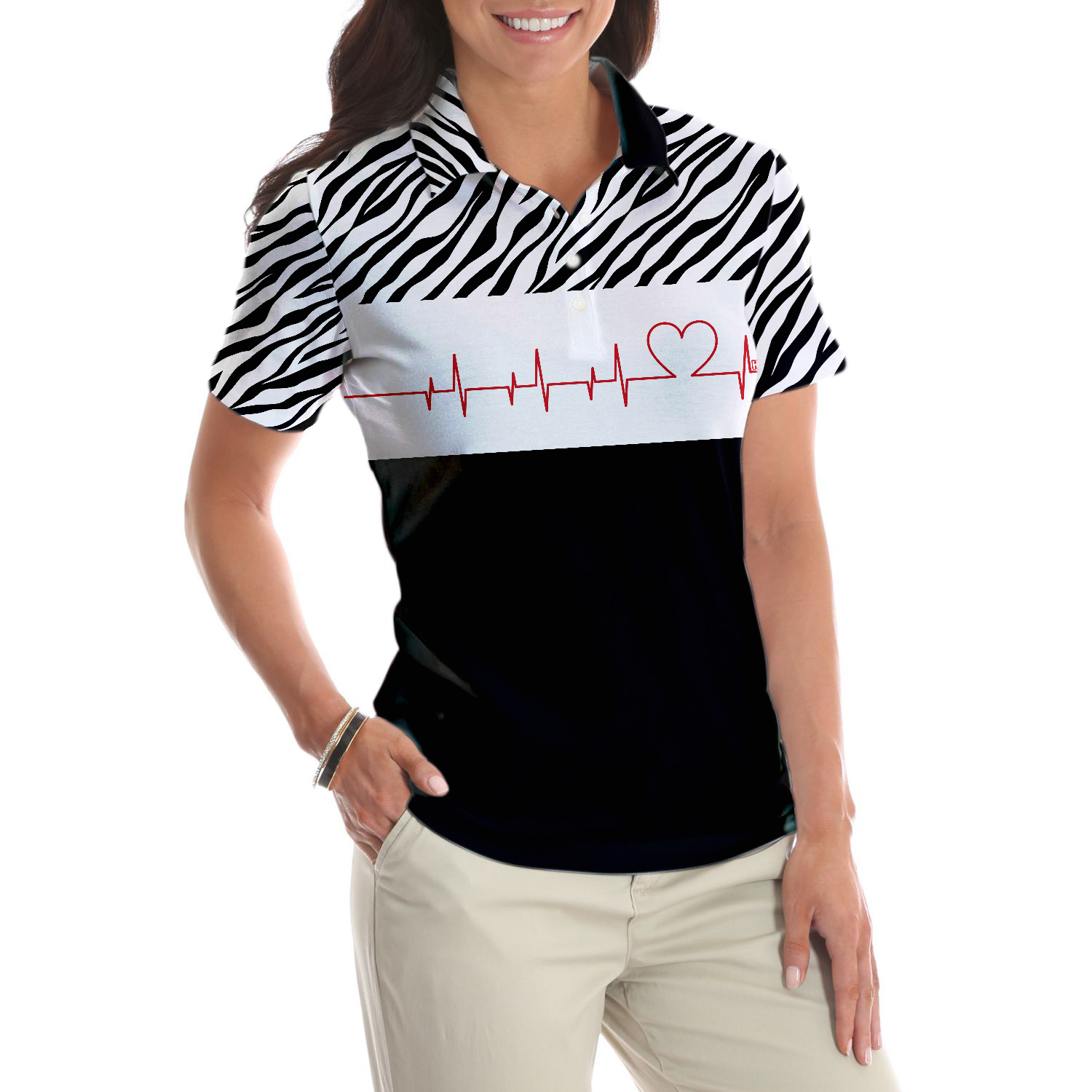 Bowling Heartbeat Women Polo Shirt, Bowling Women Polo Shirt, Heartbeat Women Polo Shirt, Zebra Pattern Short Sleeve Women Polo Shirt, Bowling Shirt For Ladies