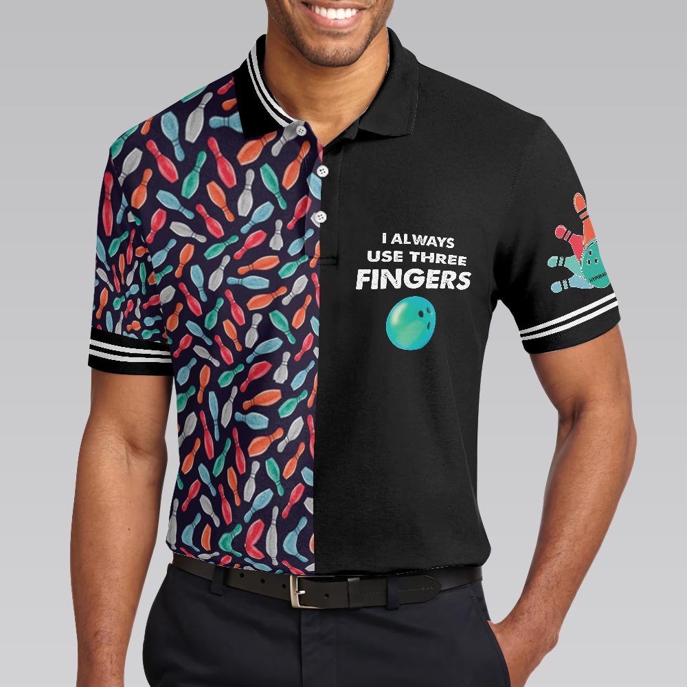 Bowling Men Polo Shirt - Bowling Ball Pattern Men Polo Shirt, I Always Use Three Fingers Polo Shirt For Men - Perfect Gift For Friend, Family, Bowling Lovers