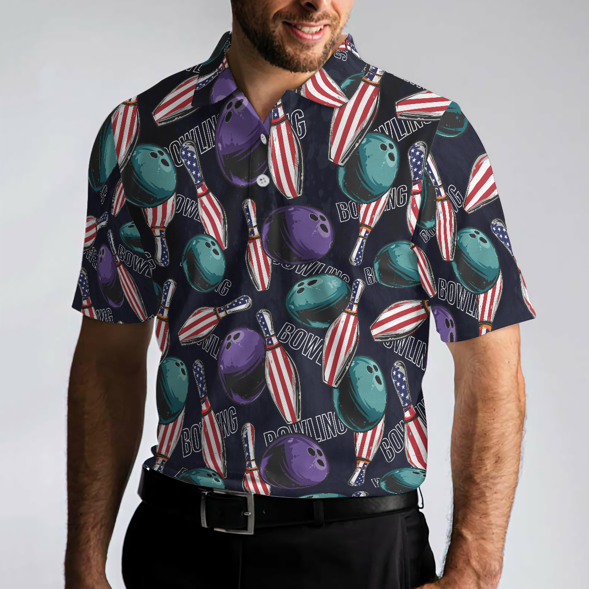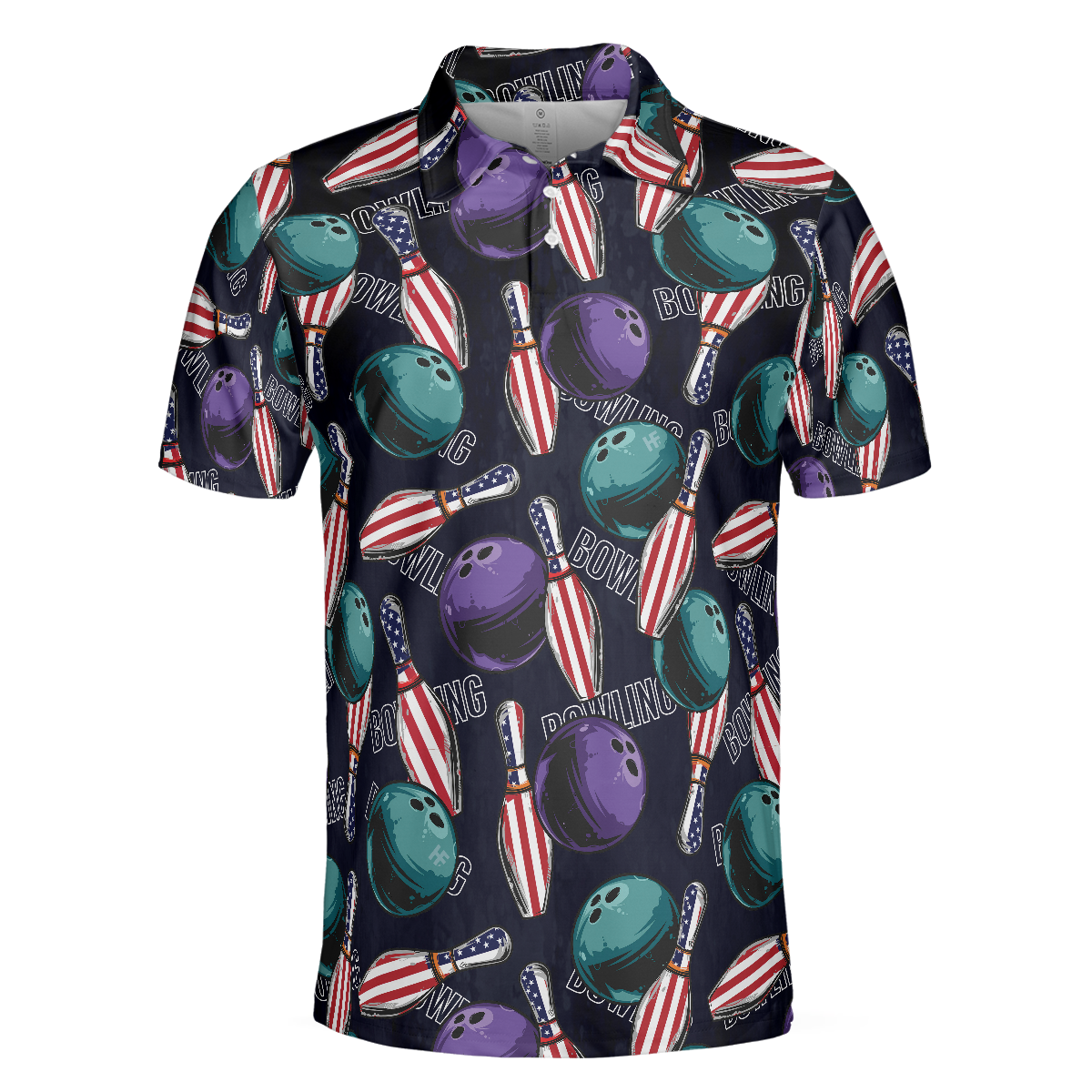 Bowling Men Polo Shirt - Bowling Is My Life Polo Shirt, American Flag Pattern Bowling Shirt For Men - Perfect Gift For Friend, Family, Bowling Lovers