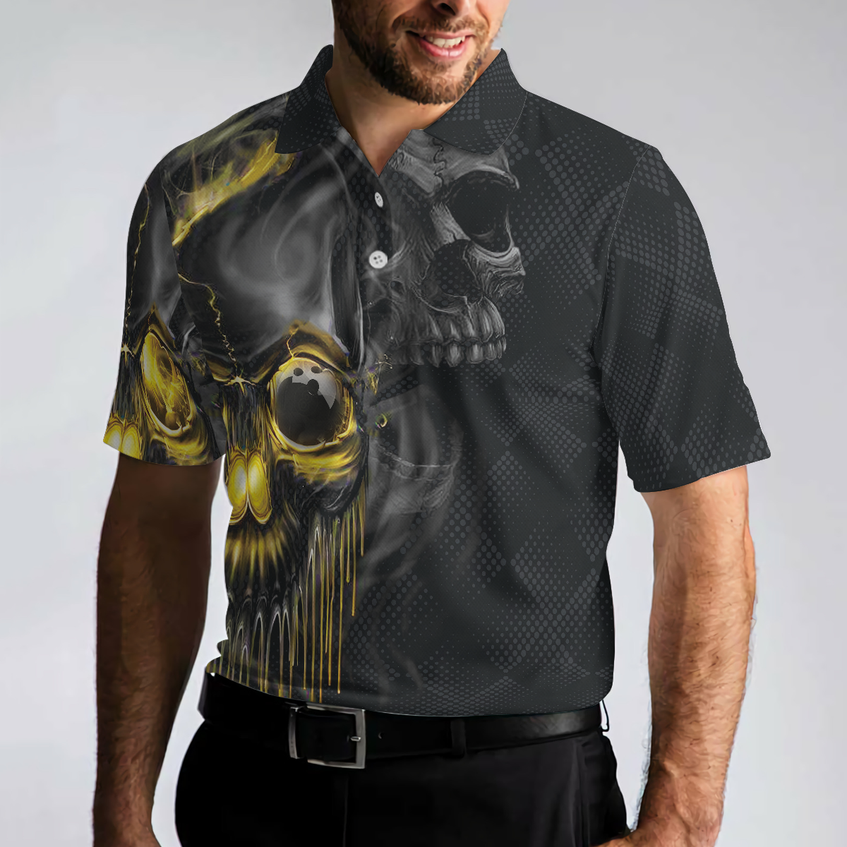 Bowling Men Polo Shirt - Scary Halloween Gift Idea For Male Bowlers, Skull Bowling Polo Shirt - Perfect Gift For Friend, Family, Bowling Lovers