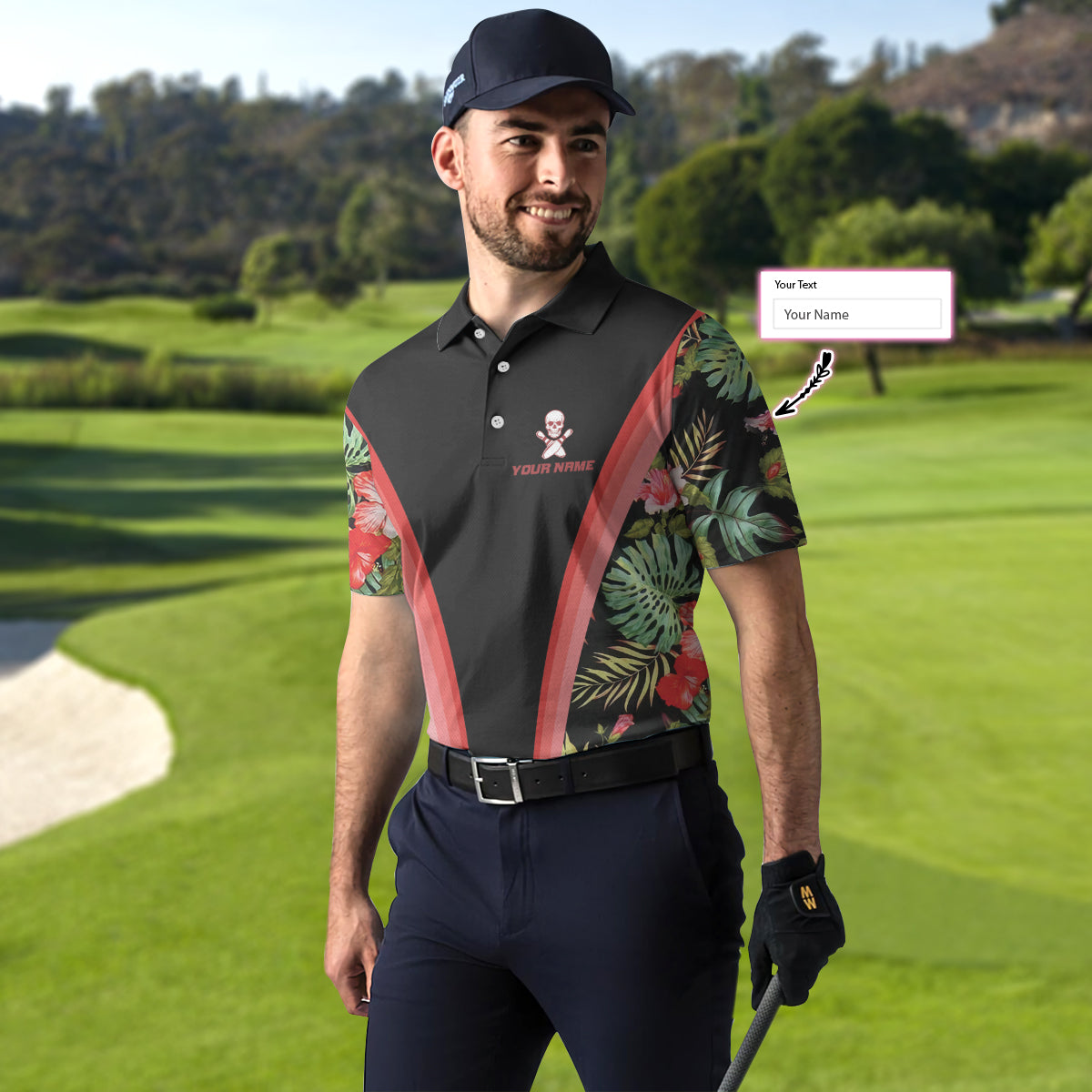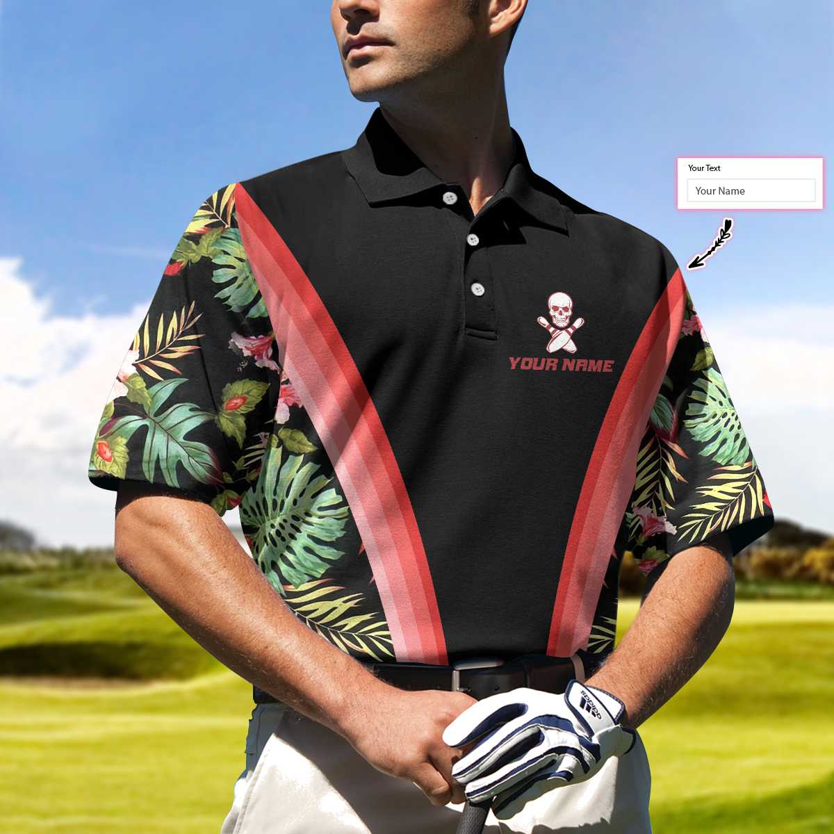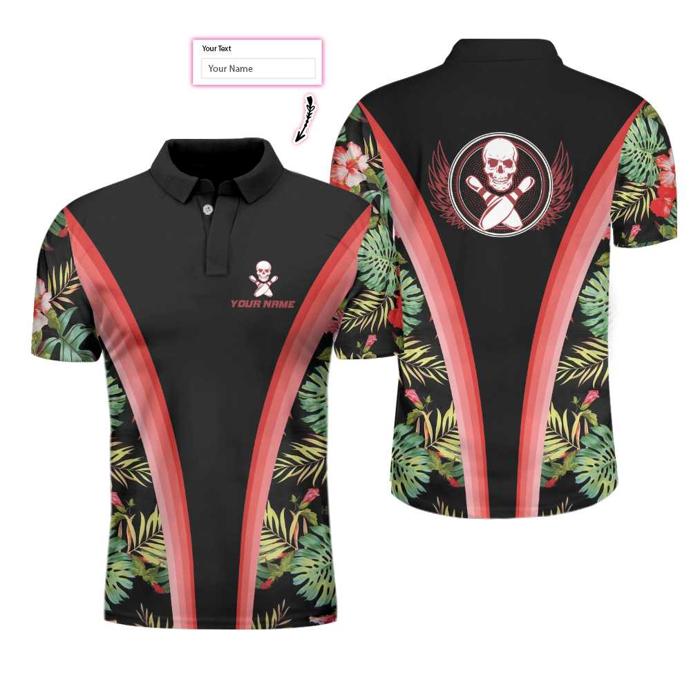 Bowling Skull Tropical Flower Custom Polo Shirt, Skull Floral Bowling Shirt For Bowlers, Cool Tropical Shirt Design