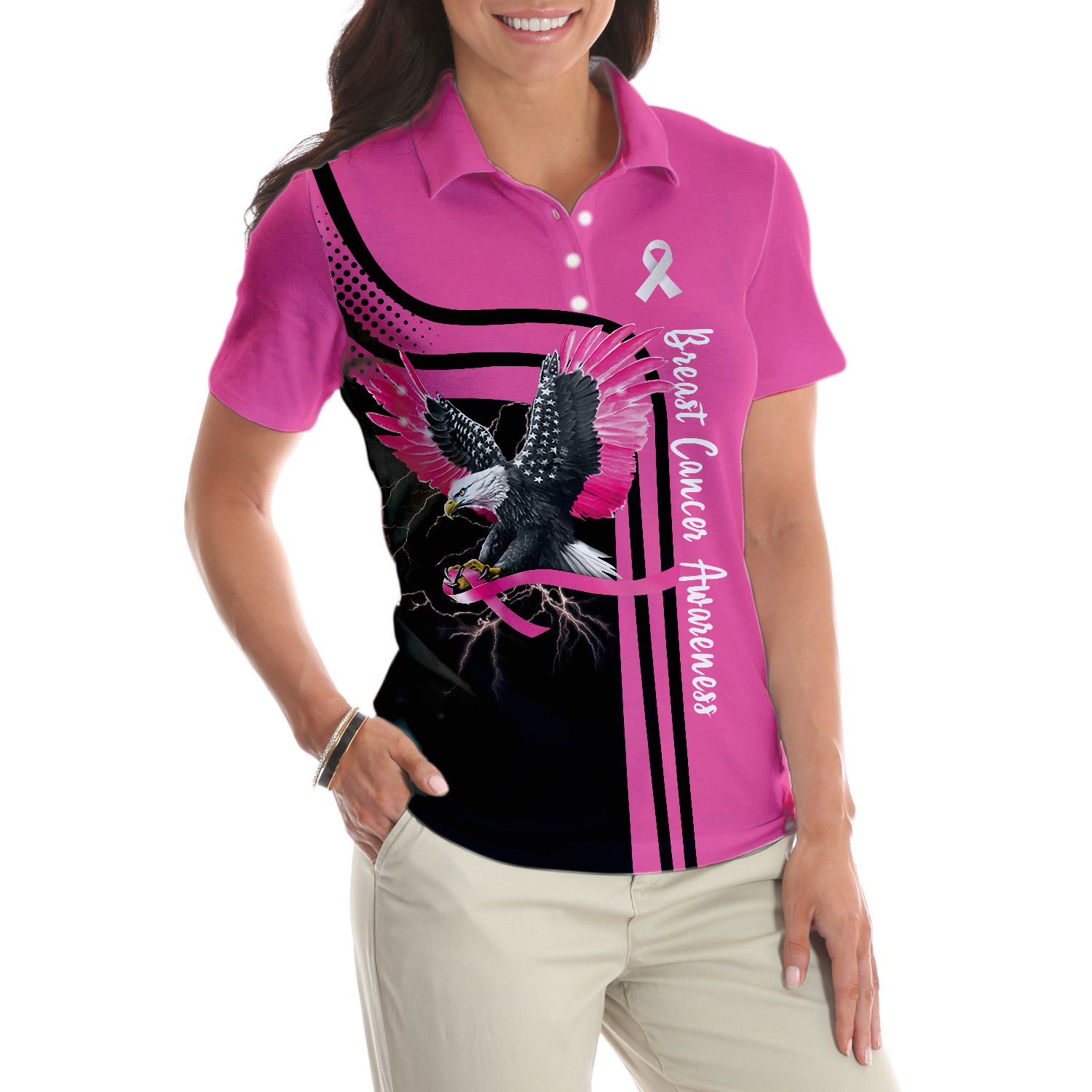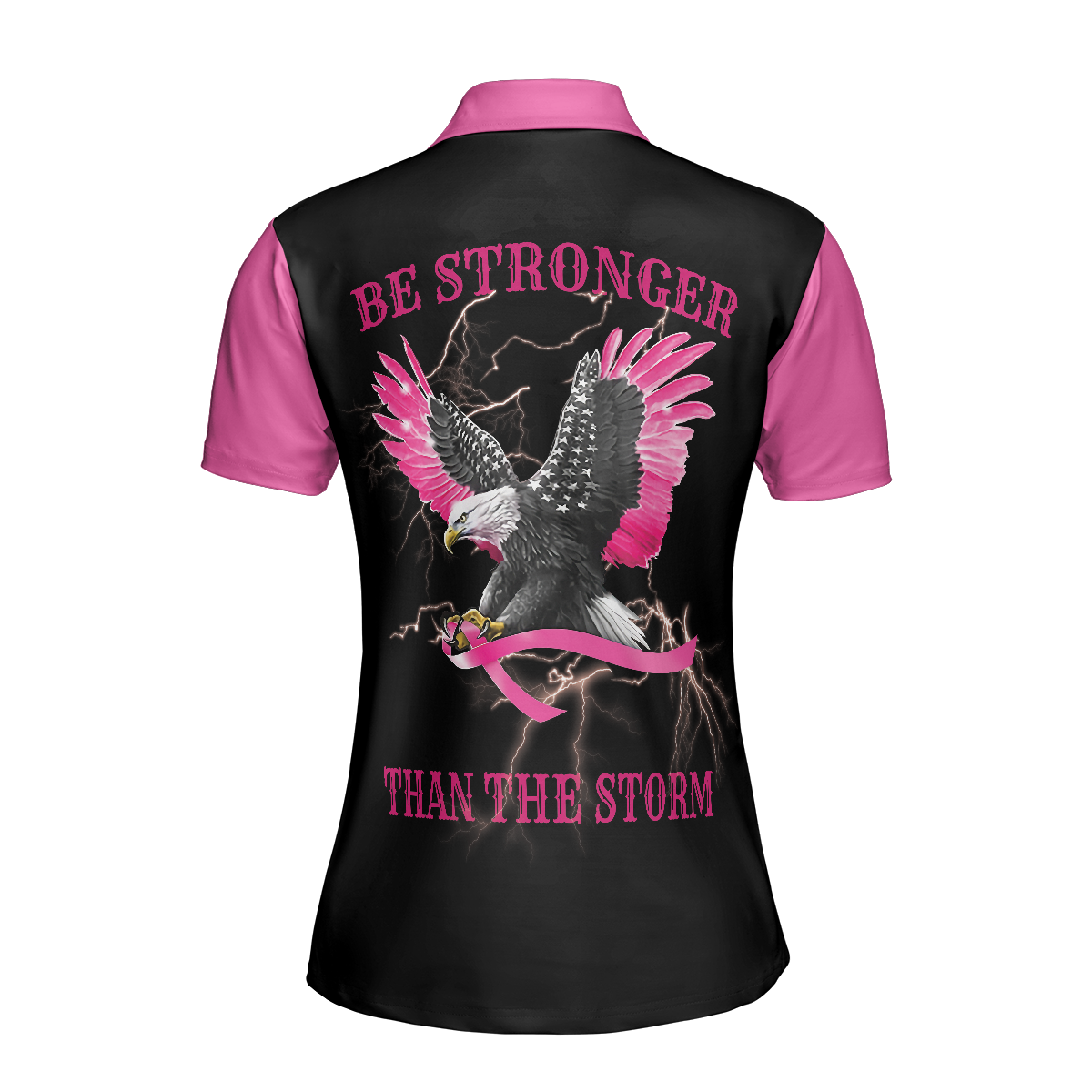Breast Cancer Awareness Women Polo Shirt, Be Stronger Than The Storm Short Sleeve Shirt For Women, Eagle Awareness Ribbon Polo Shirt For Ladies
