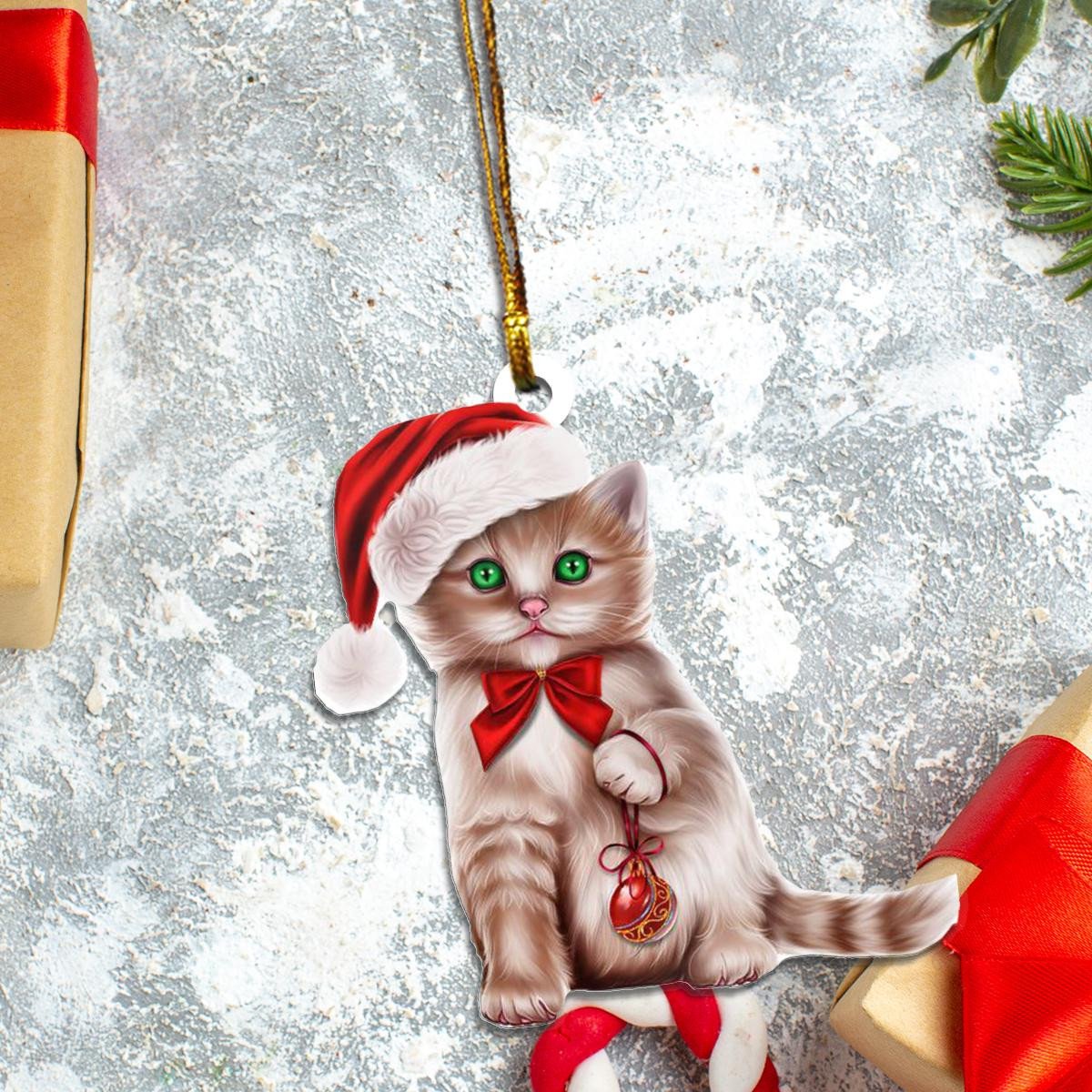 British Longhair Cat Santa Claus Red Hat Custom Plastic Acrylic Ornaments Xmas Gifts for Family Friends