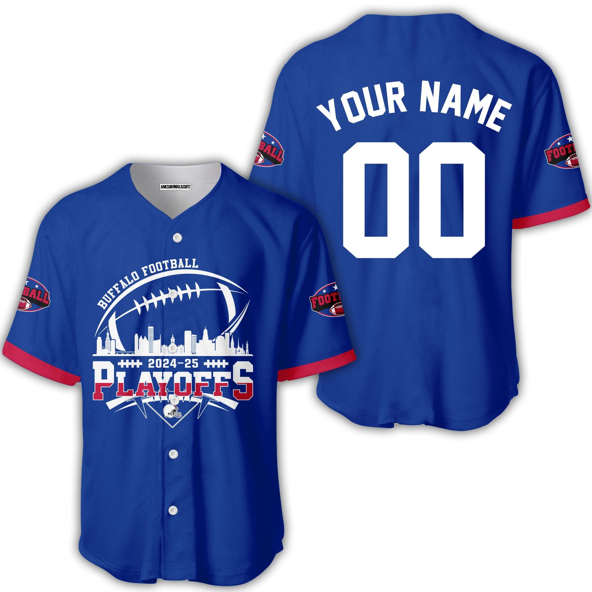 Buffalo American Football 2024-25 Playoffs Skyline Custom Baseball Jersey Shirt, Playoffs Buffalo Football Game Day Custom 2 Sided Baseball Jersey