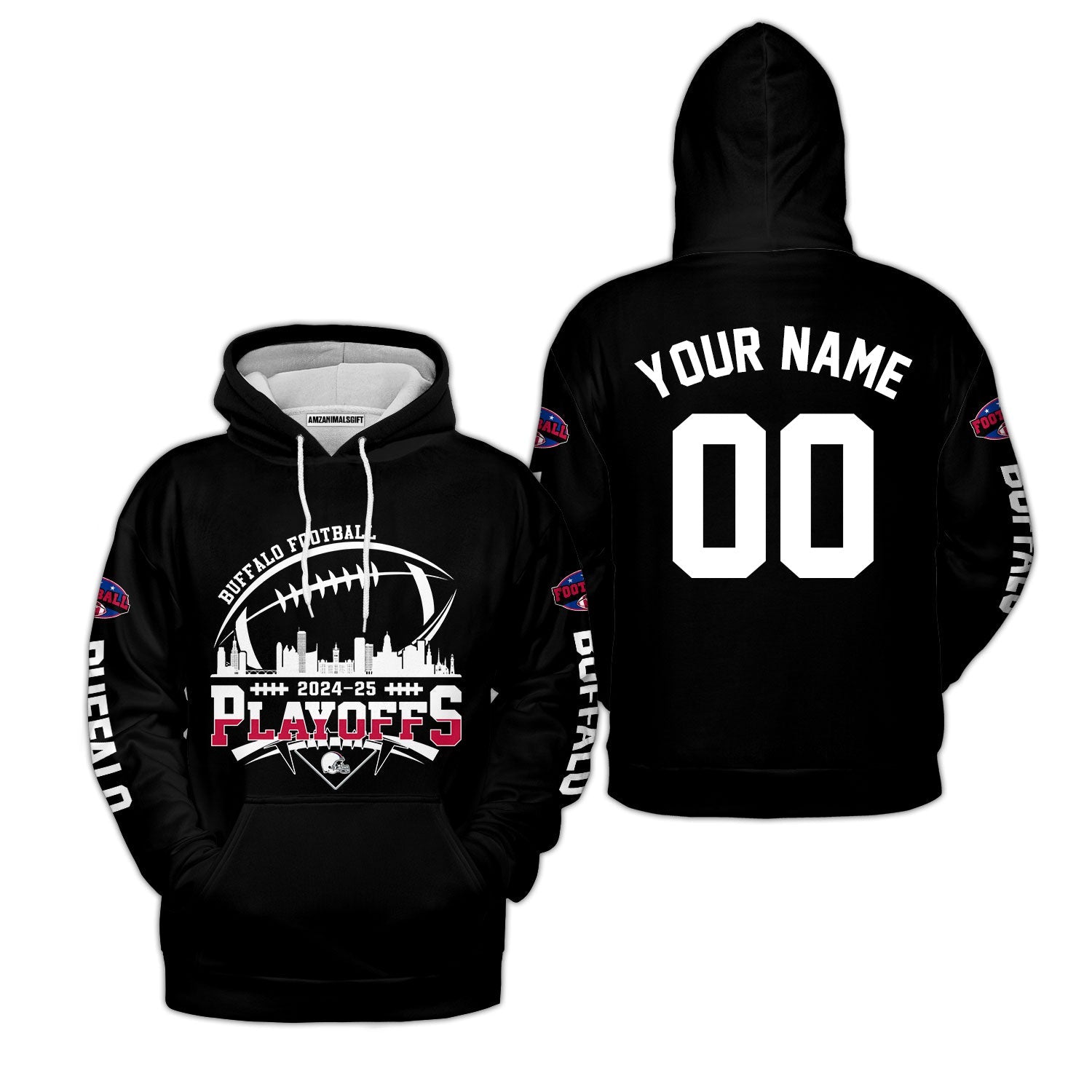 Buffalo American Football 2024-25 Playoffs Skyline Custom Sweatshirt, Playoffs Buffalo Football Game Day Custom 2 Sided Sweatshirt, Playoffs Hoodie For Buffalo Football Fans